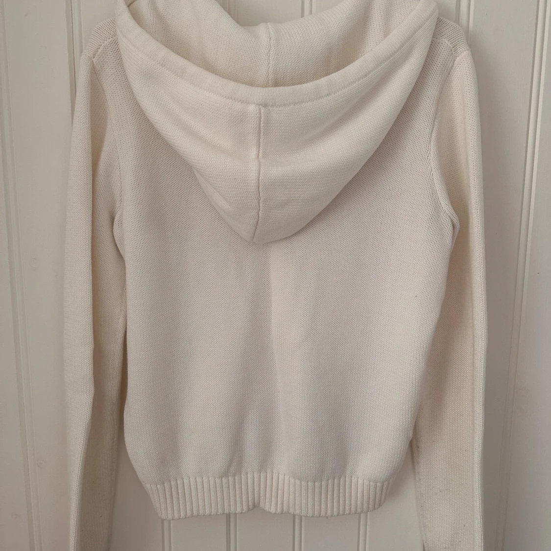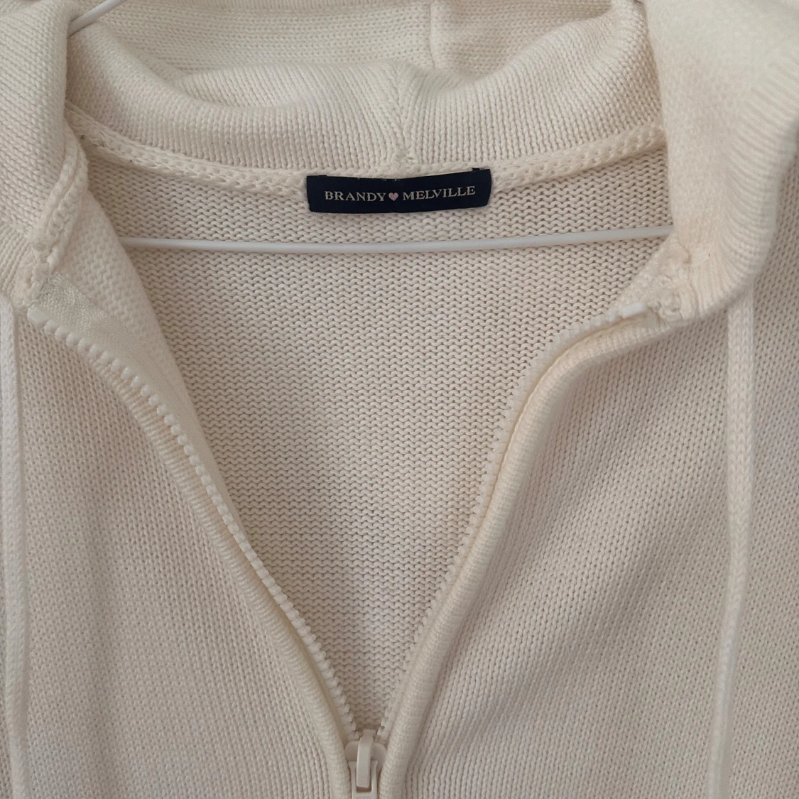 Mysig vit stickad hoodie från Brandy Melville med dragkedja framtill, huva med snörning och två fickor. Perfekt för lager-på-lager och chill dagar. Långärmad och ribbade muddar för extra komfort.