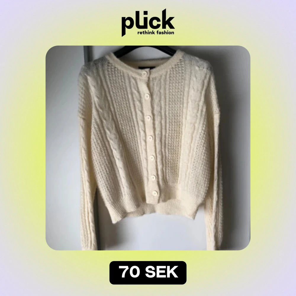 Säljer en superfin vit stickad kofta från Cider. Den har ett klassiskt flätmönster och knäpps med söta vita knappar framtill. Perfekt för höst och vinter när du vill hålla dig varm och stilren. Koftan är långärmad och sitter som tshirt. Knappt använd