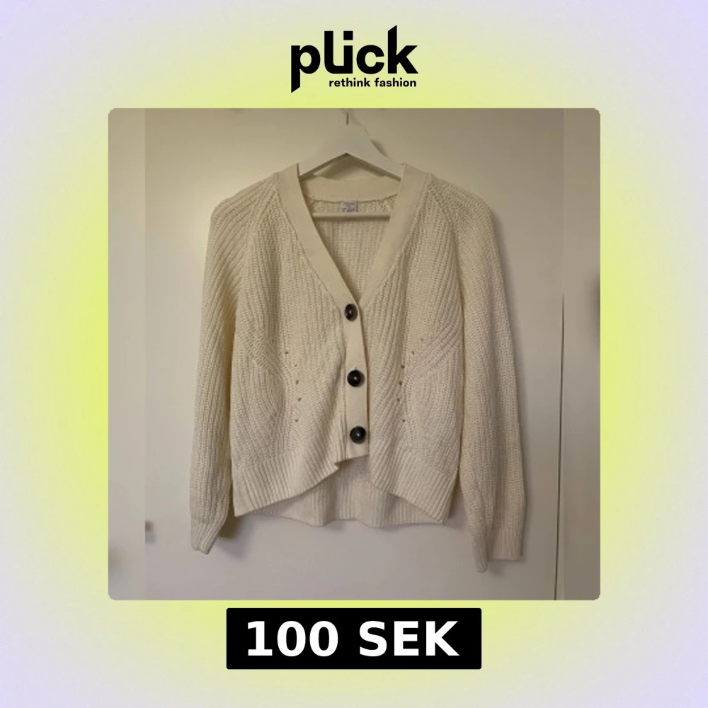 Säljer en mysig vit stickad kofta från Lindex med stora knappar framtill. Koftan har en avslappnad passform. Den är i mycket bra skick, använd fåtal gånger. Storlek 146/152.