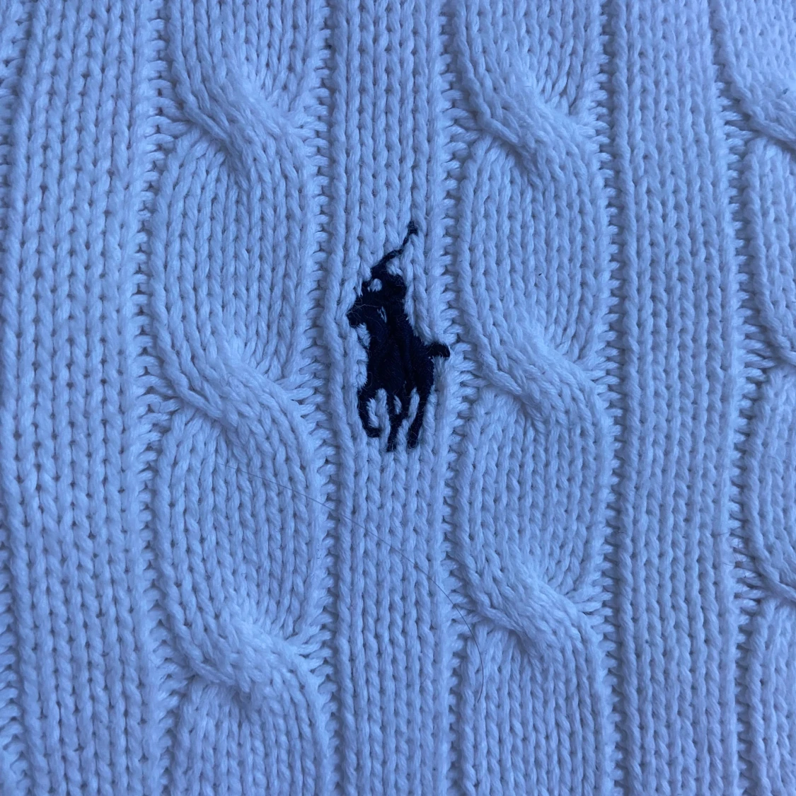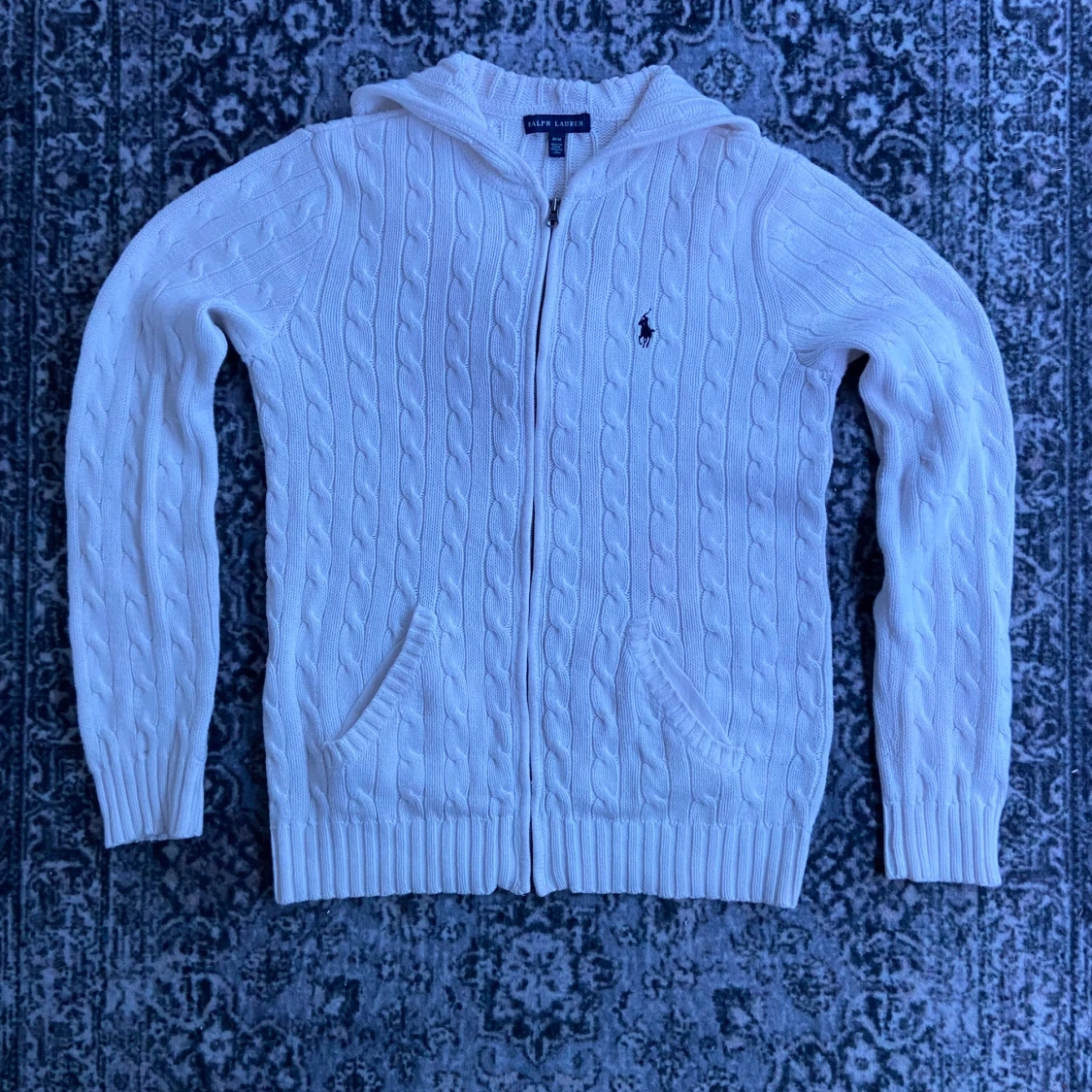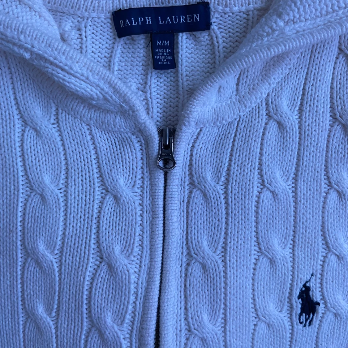 Väldigt snygg lätt cableknit helzip hoodie Ralph lauren. Storlek M i helt fantastiskt skick! Tröjan är vit och marinblå. Nypris 3600kr. Hör av dig vid frågor eller prisförslag!