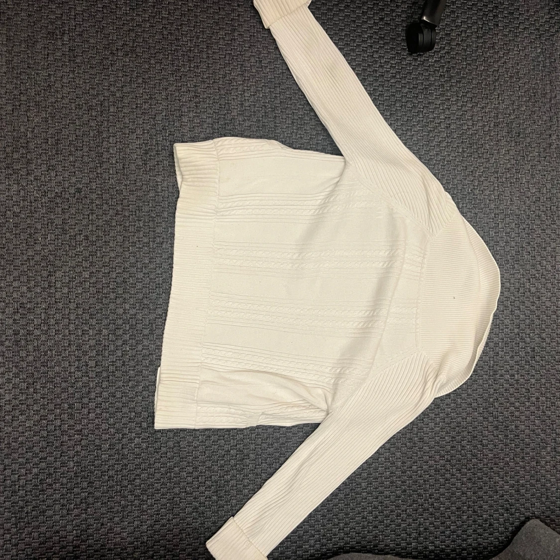 Säljer en stilren vit stickad kofta från WILVORST LLOYD. Koftan har långa ärmar, knappar framtill och ett diskret mönster i stickningen. Perfekt för lager-på-lager och passar till många olika outfits. Väldigt Grisch!