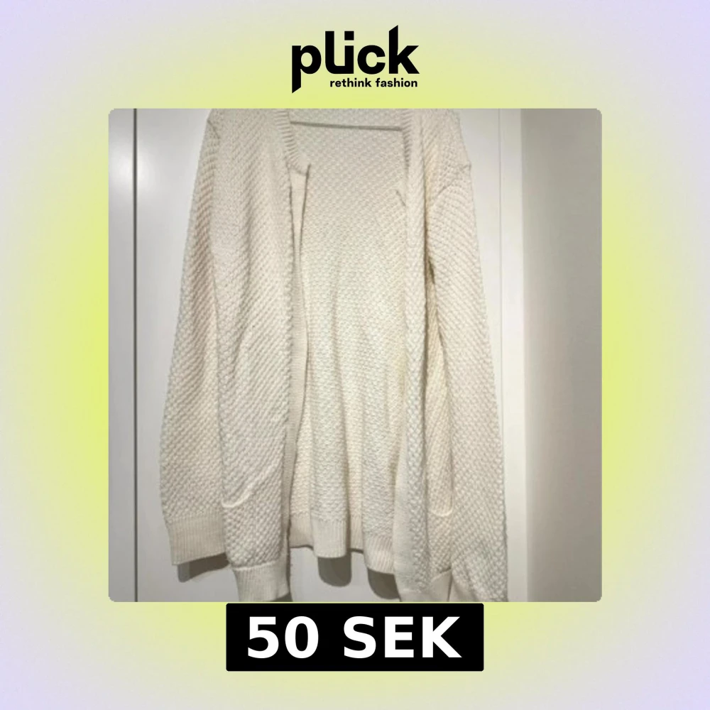 Mysig vit stickad kofta med snygg struktur och ribbade muddar. Koftan är öppen framtill och har långa ärmar, perfekt att slänga på sig när det är lite kyligt. Enkel att matcha med olika outfits och superbekväm att bära.
