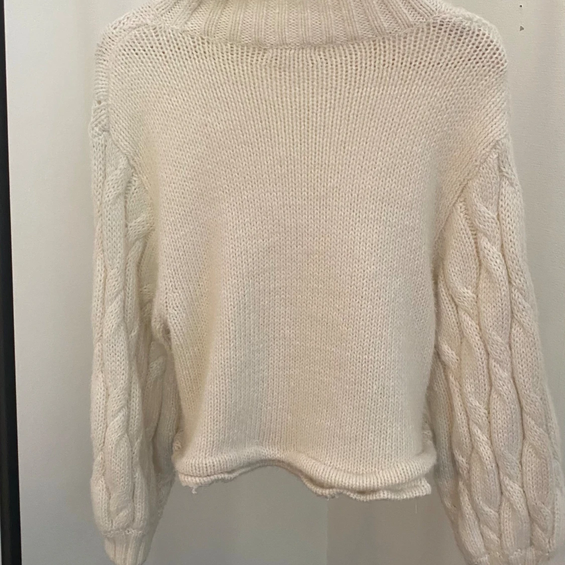 Supersöt stickad tröja. Framgårninte så bra på bild men pga den nedersta sömmen går tröjan ut nertill som är en väldigt gullig detalj. Tröjan är från H&M, men jag har själv sytt om den lite.