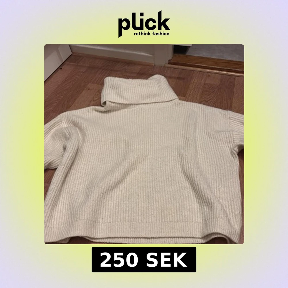 Säljer en mysig vit stickad polotröja med hög krage. Tröjan har lång ärm och är ribbstickad vilket ger en snygg struktur. Perfekt för kyliga dagar och enkel att matcha med olika outfits.