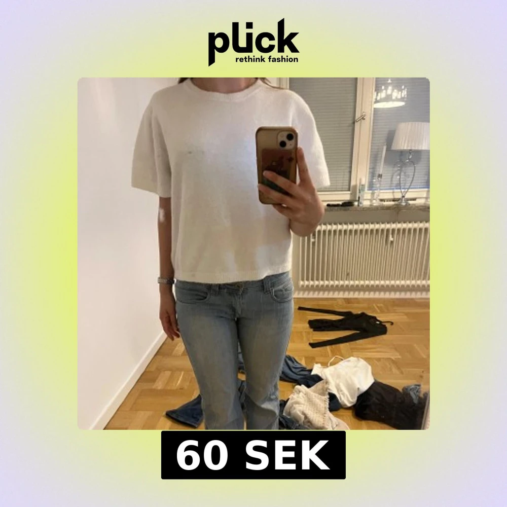Vit stickad trekvarts tröja