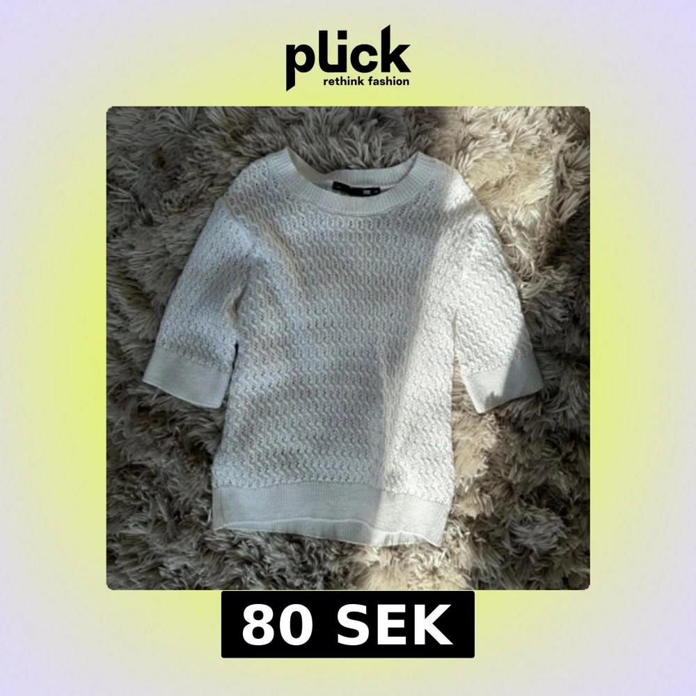 tröjan har ett snyggt hålmönster och ribbade muddar vid hals, ärmslut och nere, den har trekvartsärm och är enkel att matcha med både jeans och kjol!! 💘 köpt för 150kr och är endast använd en gång, inga defekter!!