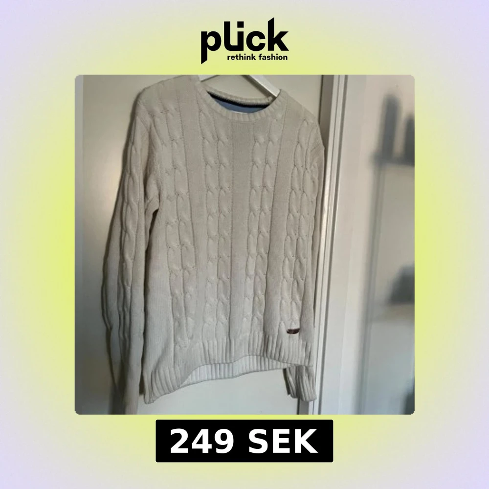 Säljer en stilren vit stickad tröja med kabelstickat mönster. Tröjan är från bondelid!