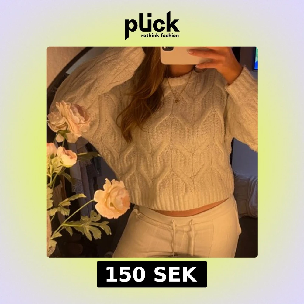 Säljer en mysig vit stickad tröja med kabelstickat mönster. Superfin och den är i fint sick!💌passar M och s storleksmässigt🥰