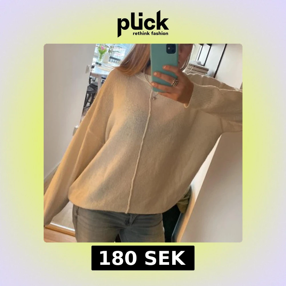 Mysig vit stickad tröja med långärmad design. Perfekt för kyligare dagar och enkel att matcha med olika outfits.