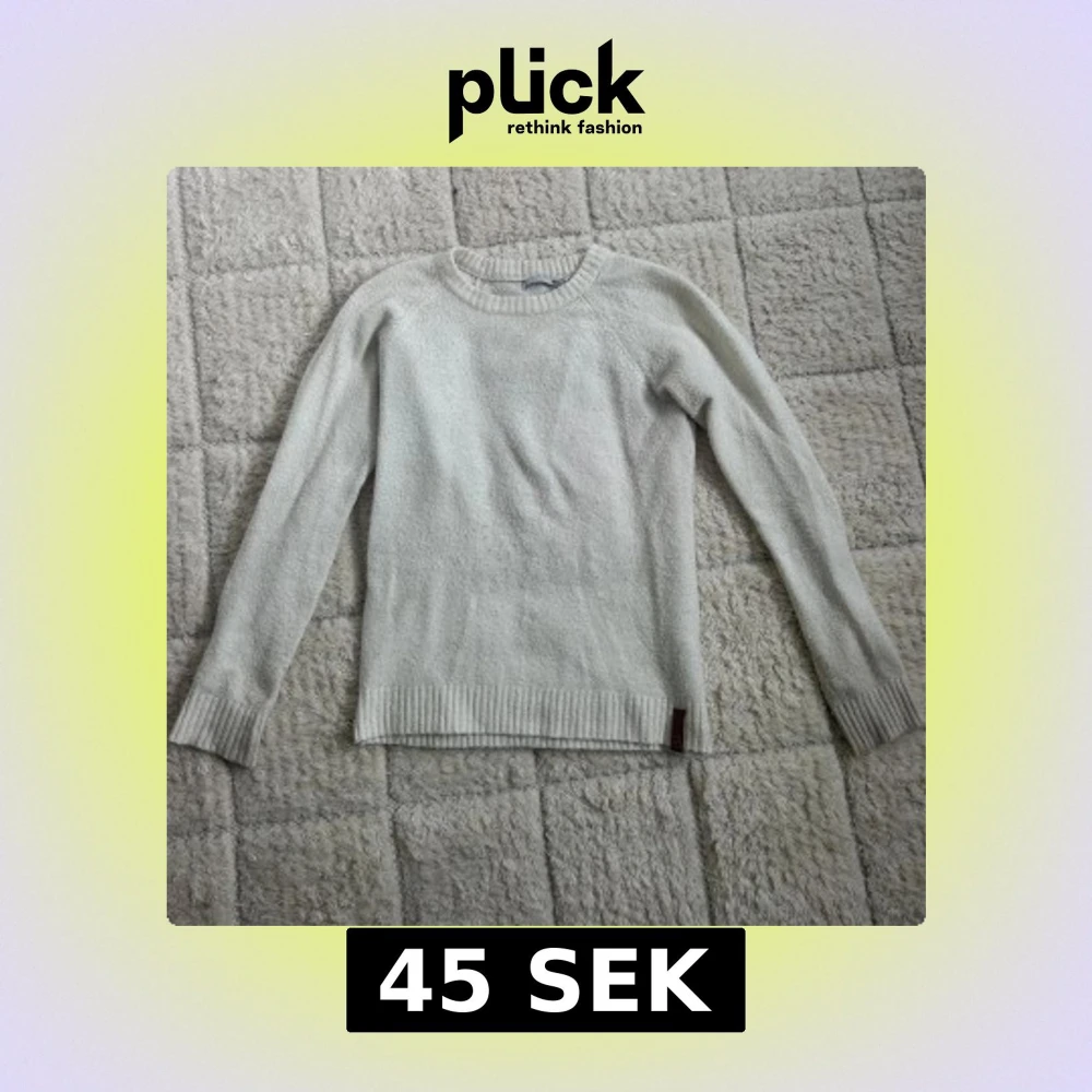 Vit stickad tröja från 157 med rund halsringning och ribbade muddar vid ärmslut och nederkant. Enkel och stilren design som passar perfekt till lager-på-lager. Långärmad och mjuk, perfekt för kyligare dagar.