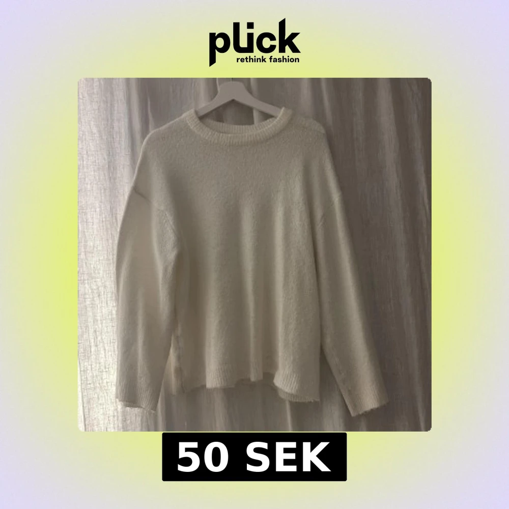 Mysig vit stickad tröja från 157 i storlek S. Tröjan har rund hals, ribbade muddar och en loose passform som ger en chill vibe. Perfekt för lager-på-lager och att matcha med jeans eller kjol. Enkel och clean design utan mönster eller detaljer.