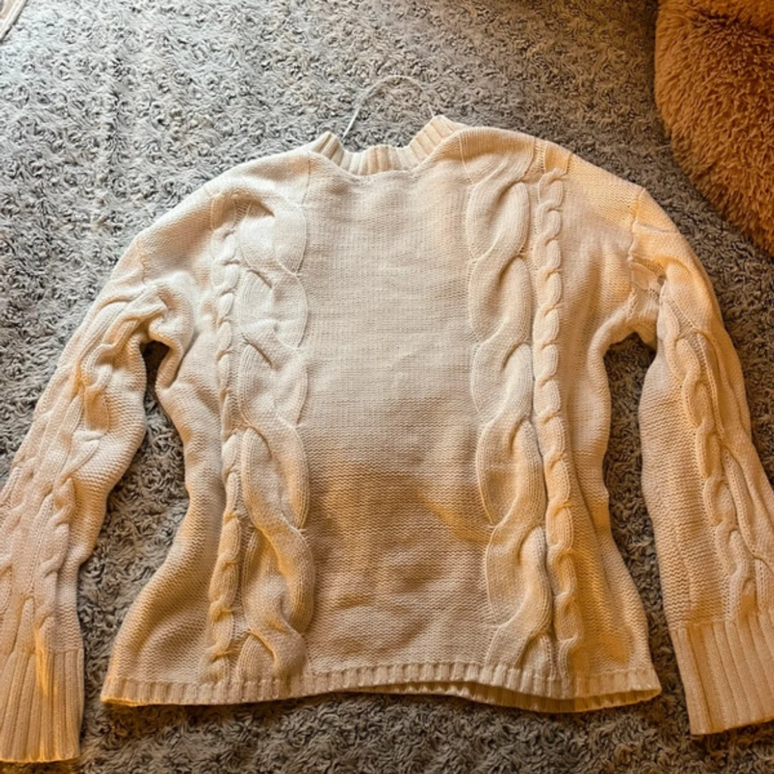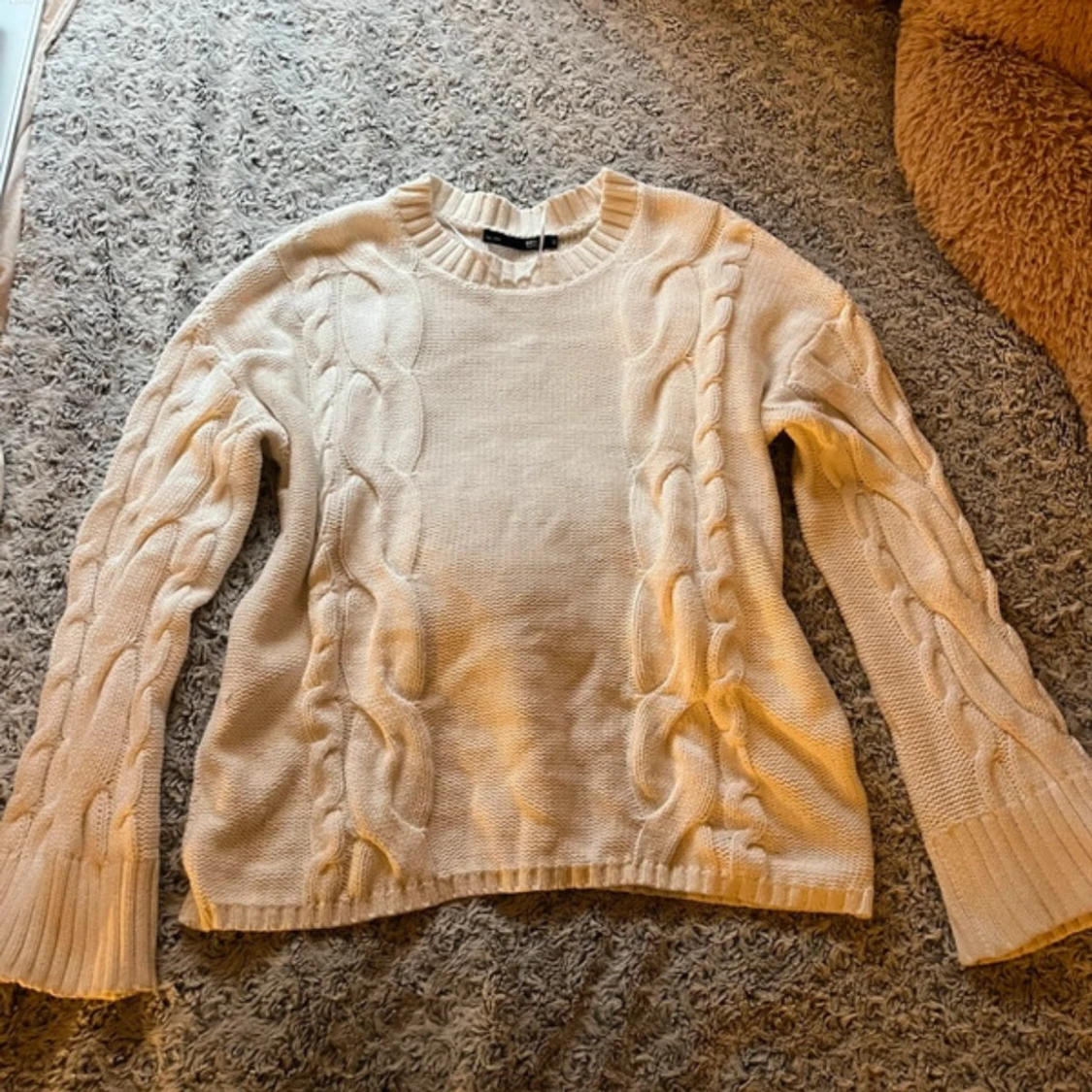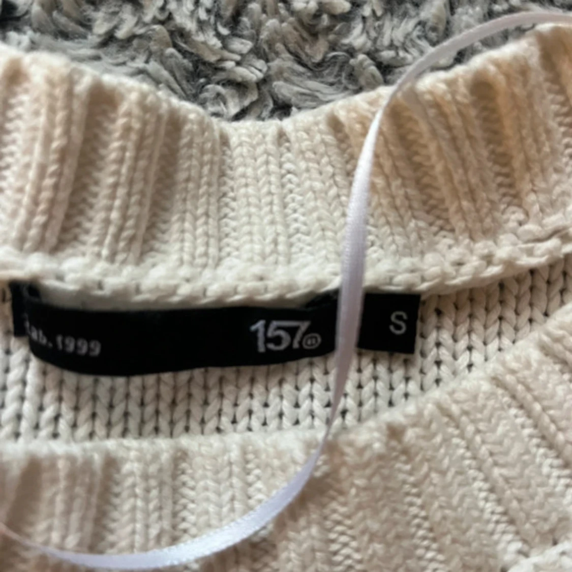 Säljer en vit stickad tröja från 157 i storlek S. Den är i gott skick.