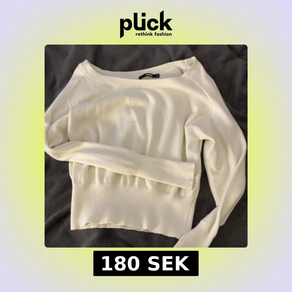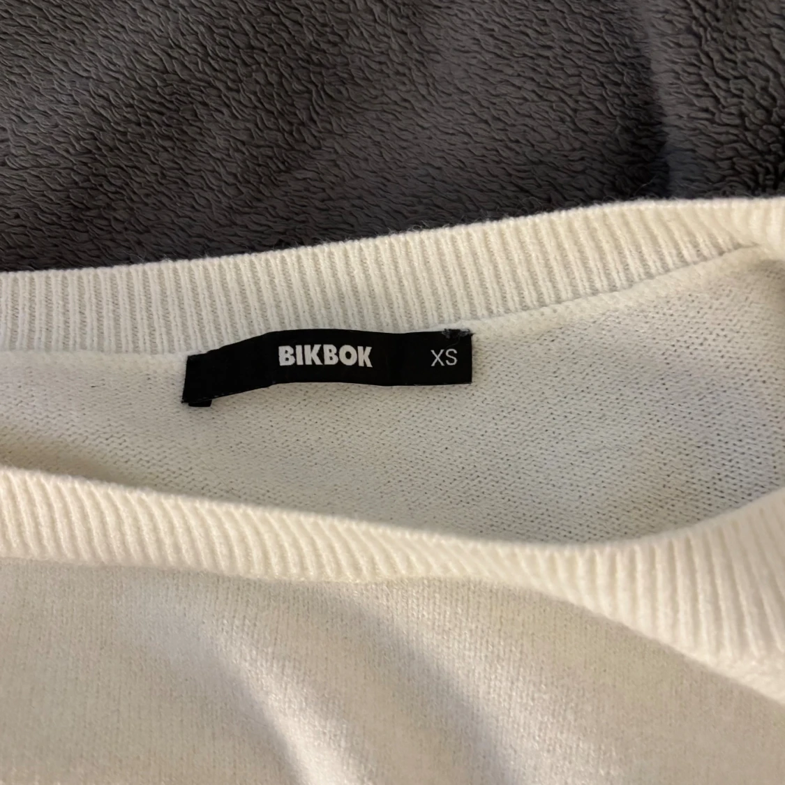 Superfin vit stickad tröja från BikBok i storlek XS. Tröjan har bred ribbad mudd nertill och vid ärmslut, rund halsringning och lång ärm. Perfekt för lager-på-lager och enkel att matcha med jeans eller kjol.