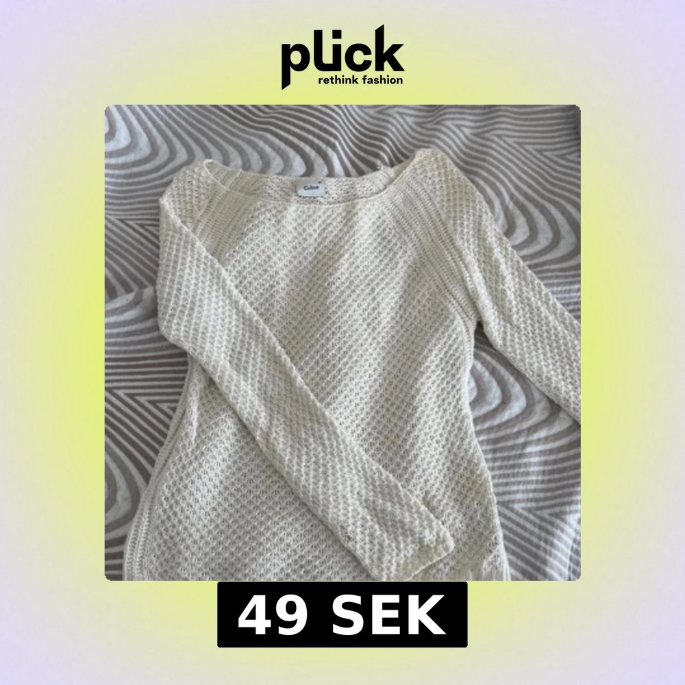 Säljer en vit stickad tröja från Cubus med långärmad design och rund halsringning. Storlek M men liten i storlek. Superfint skick förutom en liten fläck vid ärmen som ej syns och som jag tror kan tvättas bort
