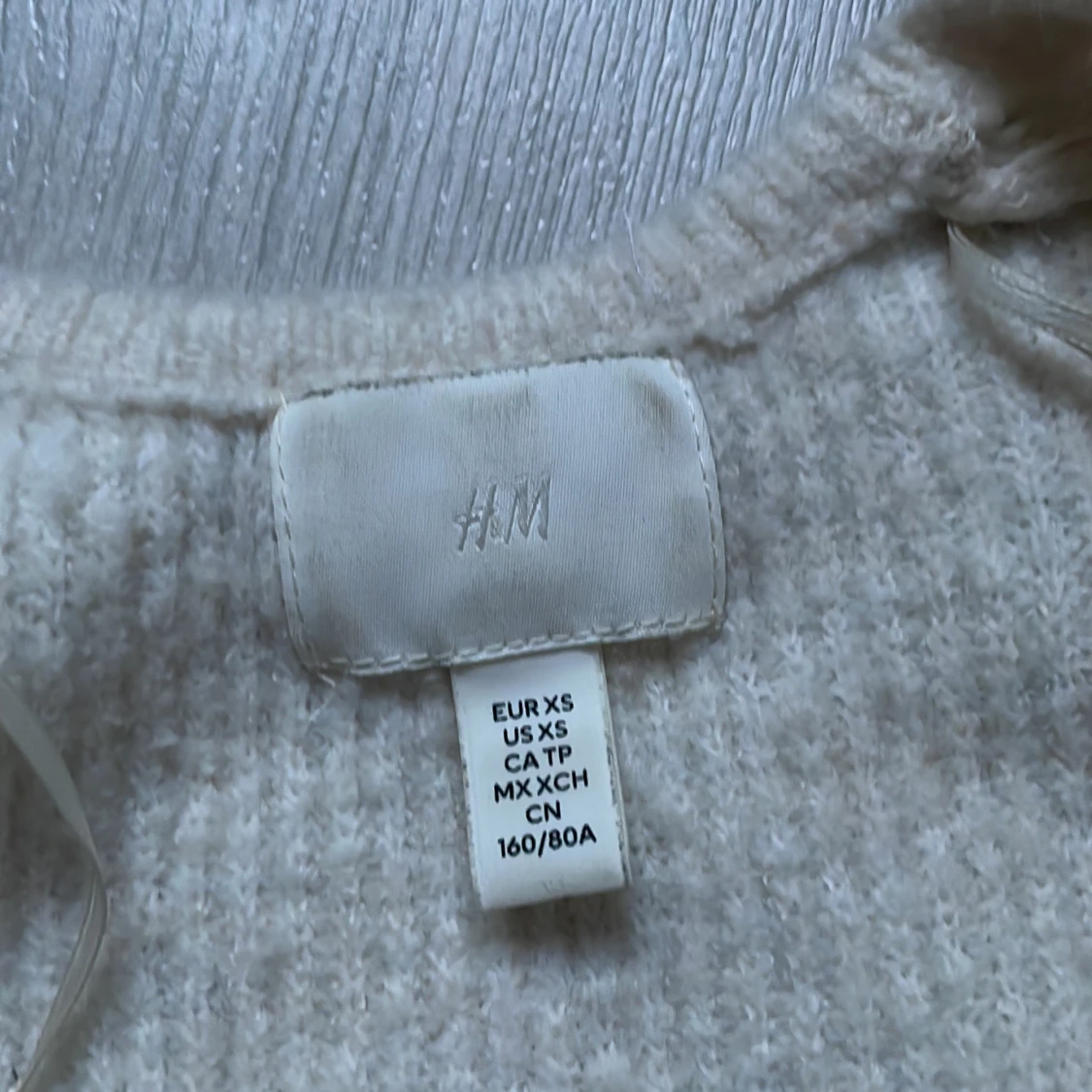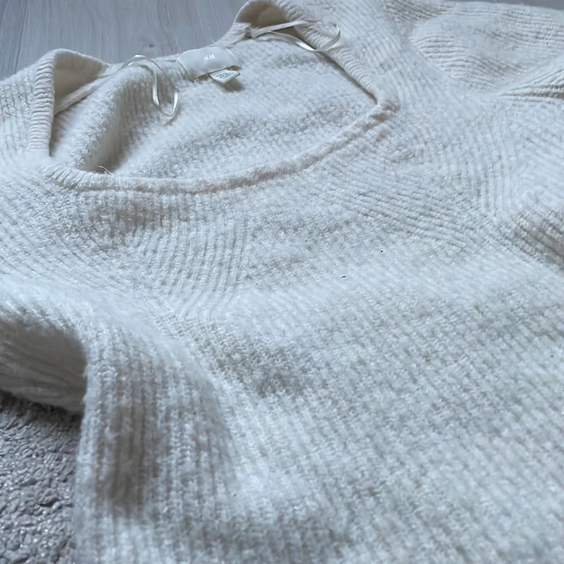 Säljer en mysig vit stickad tröja från H&M. Tröjan har en fyrkantig halsringning och långa ärmar, perfekt för kyliga dagar. Den är både stilren och bekväm, ett måste i garderoben! 🧶