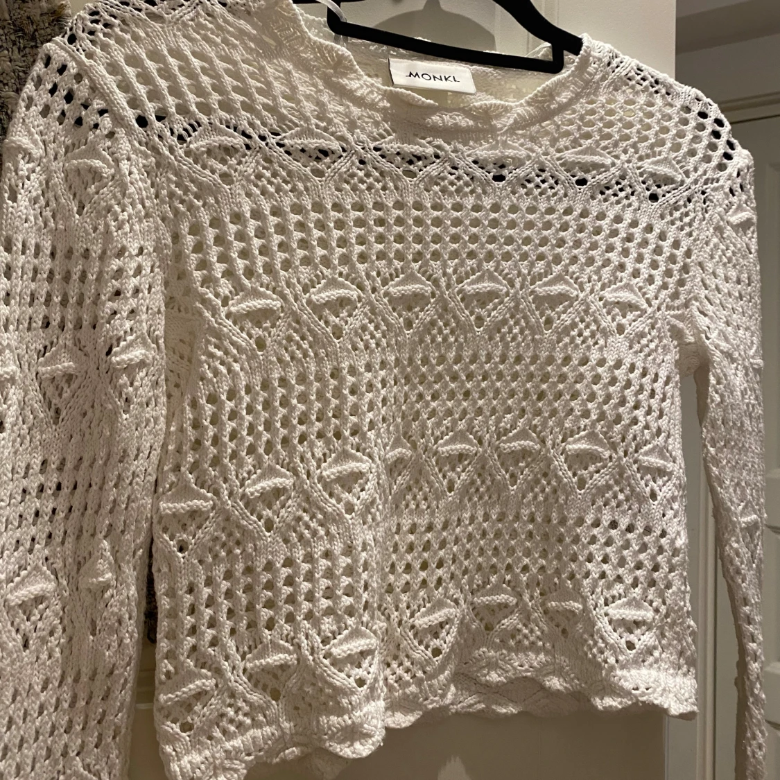 Säljer en vit stickad tröja från Monki i storlek XS. As snygg men ändå simpel💕💕💕