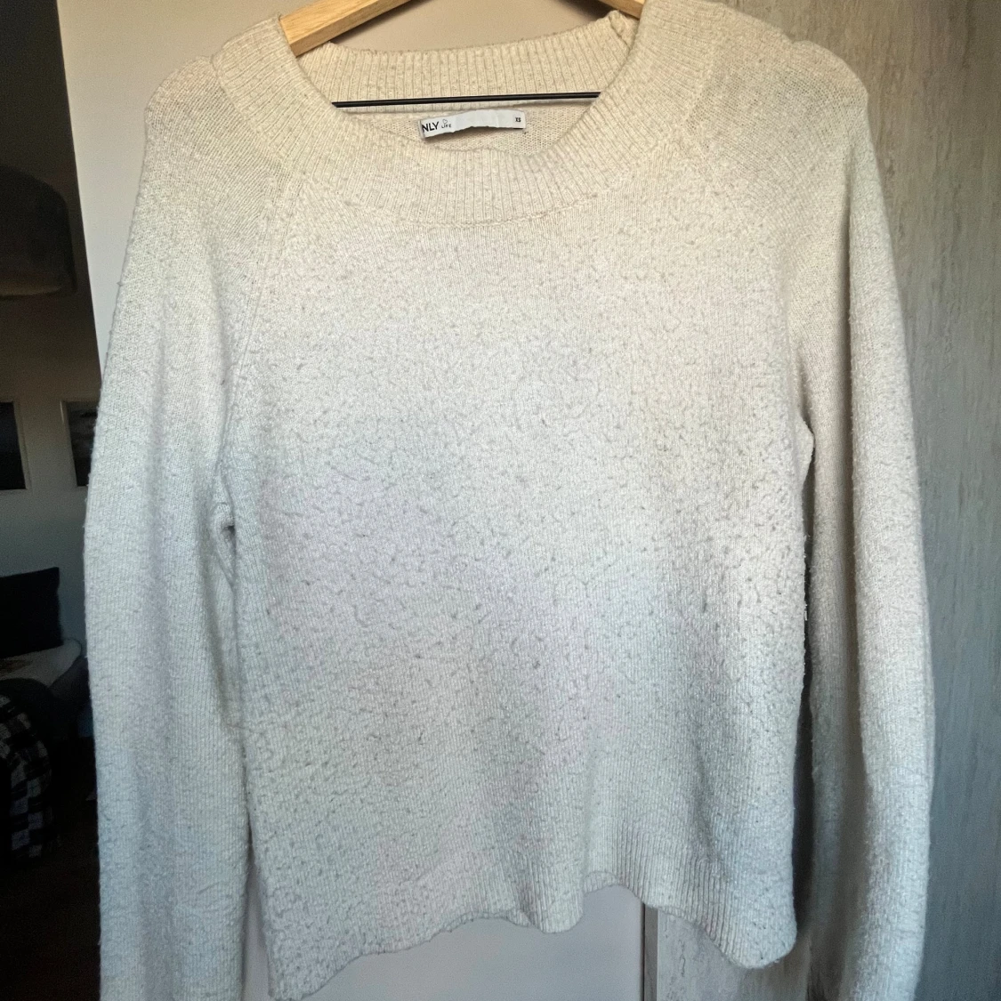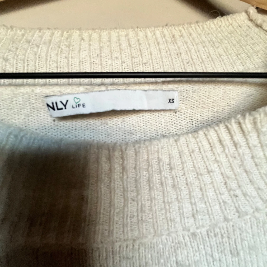Mysig vit stickad tröja från ONLY i storlek XS. Tröjan har en bred ribbad rund halsringning och långa ärmar. Perfekt för kyliga dagar och enkel att matcha med jeans eller kjol. Materialet är mjukt och ger en skön känsla.