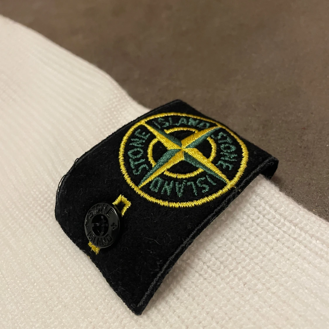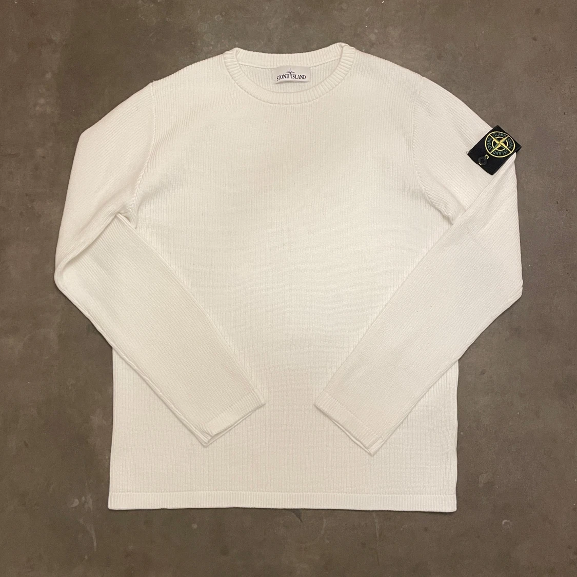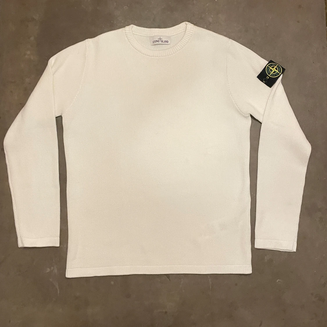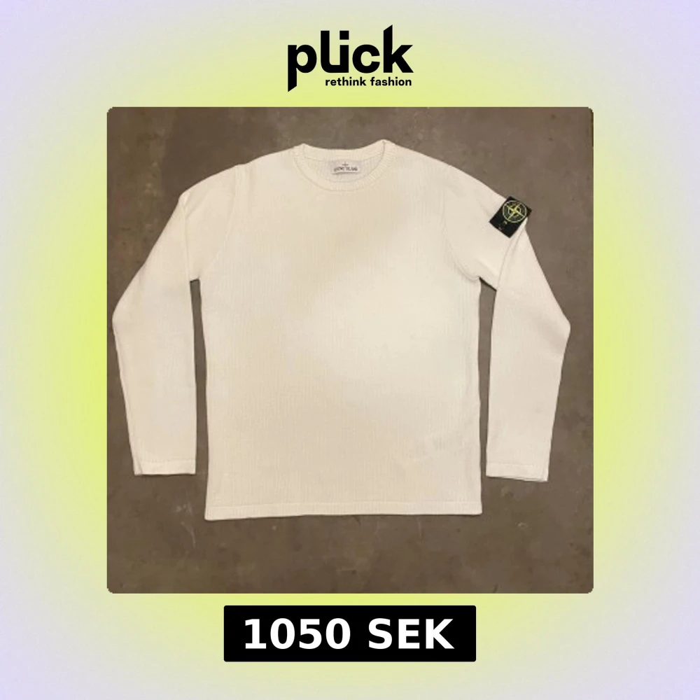 Vit stickad tröja från Stone Island med klassisk rund hals och lång ärm. Tröjan har den ikoniska Stone Island-loggan på vänster ärm, vilket ger en clean men ändå streetig vibe. Perfekt för dig som gillar stilrena plagg med tydlig branding.