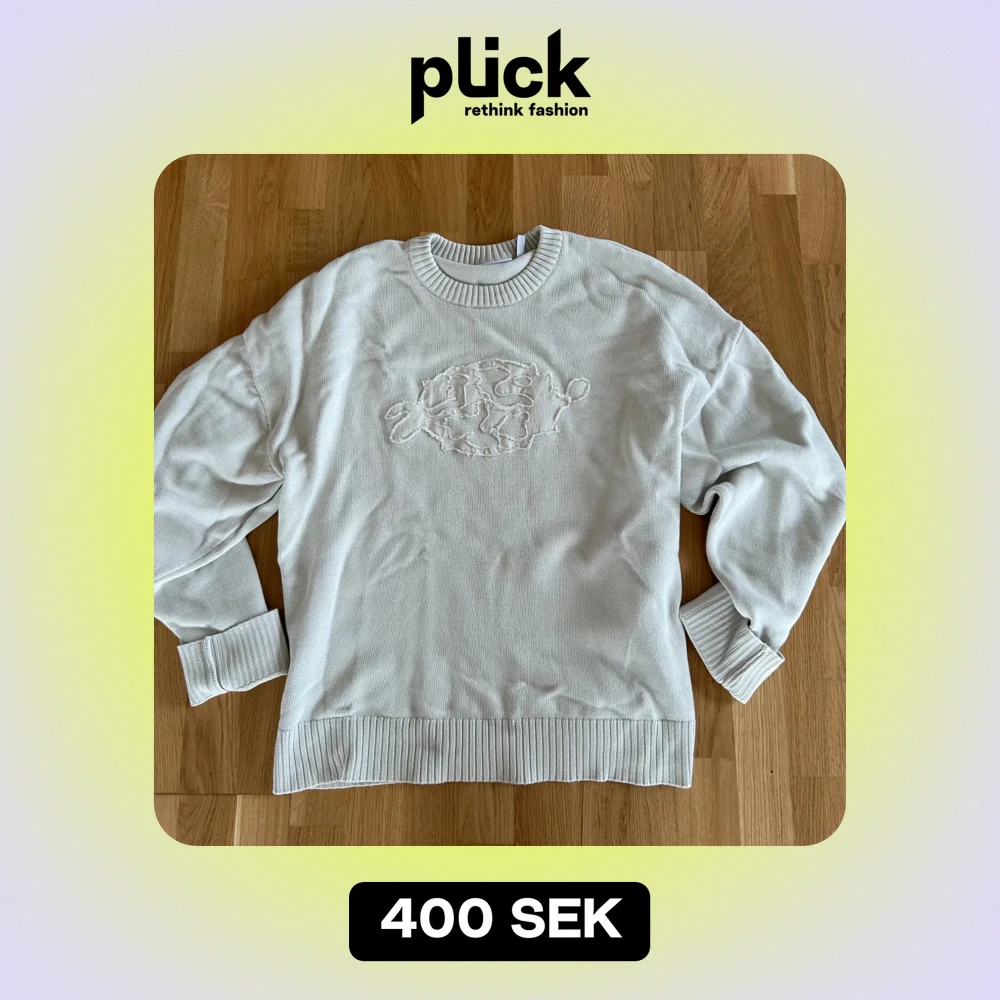 Vit stickad tröja från Weekday. Den har ett coolt broderat mönster på framsidan och ribbade muddar vid ärmslut och nederkant. Perfekt för en stilren vinter. Passar både till vardags och fest!
