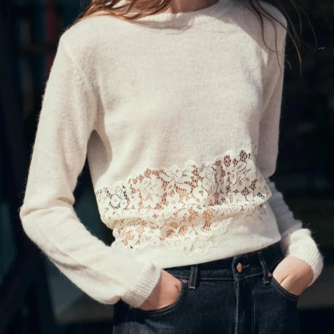 Vit stickad tröja från Zara med spetsdetalj🩷🩵