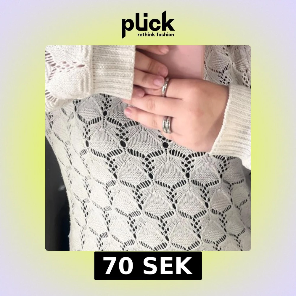 Superfin vit stickad tröja med unikt hålmönster och ribbade muddar. Använd men inga tecken på det💖💖💖