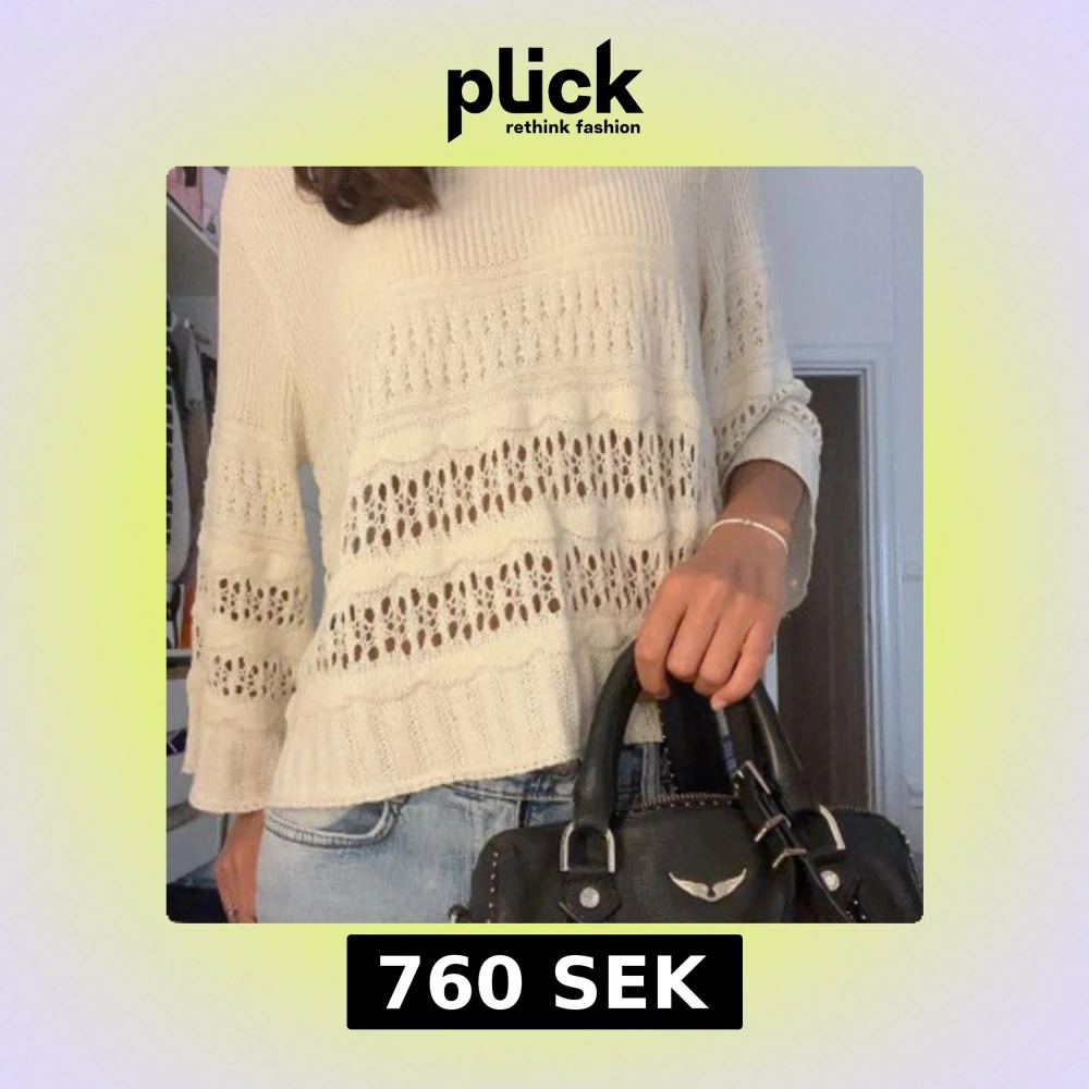 Superfin vit stickad tröja med hålmönster och breda ribbade kanter. Tröjan har en avslappnad passform och långa ärmar, perfekt att styla med jeans för en chill look.