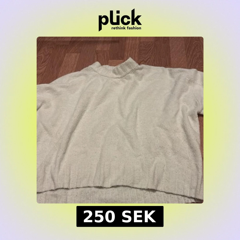 Mysig vit stickad tröja med hög krage och långa ärmar. Tröjan har ribbade muddar vid ärmsluten och en enkel, stilren design som passar till mycket.