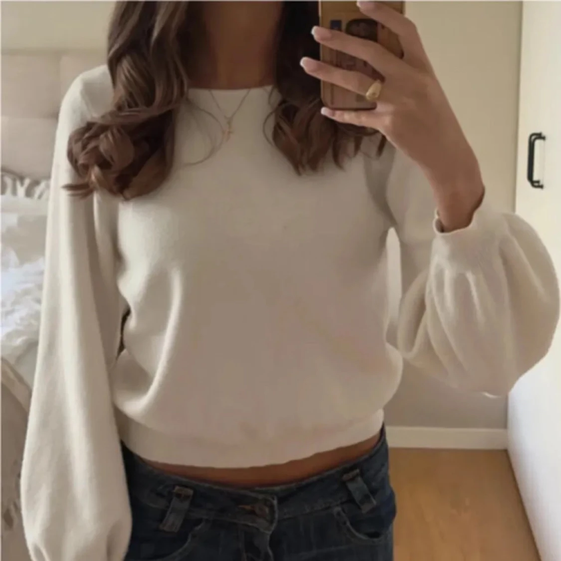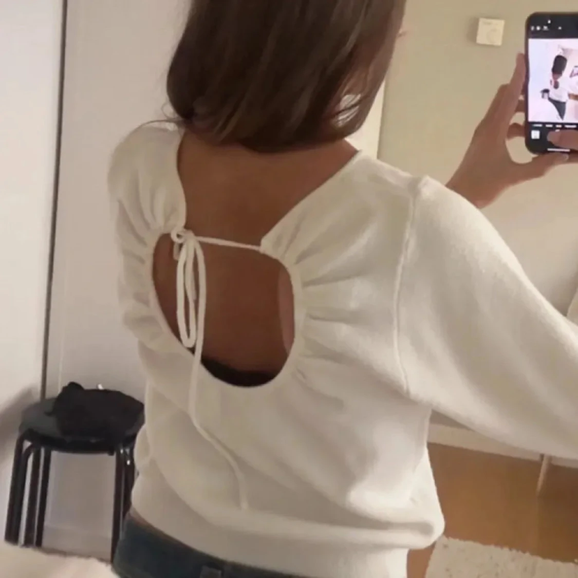 Sälja en superfin vit tröja med långa ärmar och en snygg öppen rygg💕(lite nopprig)