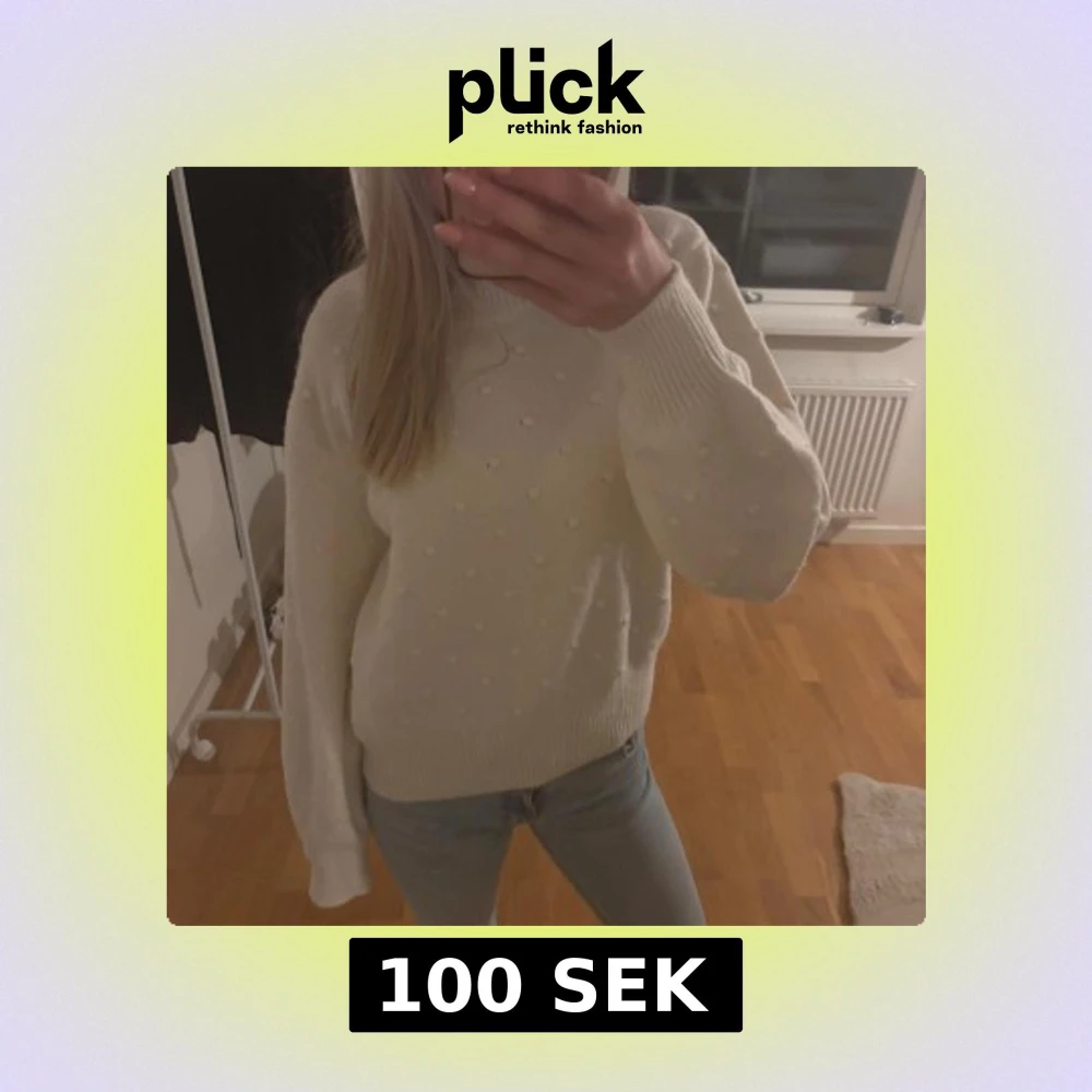 Vit stickad tröja med prickar