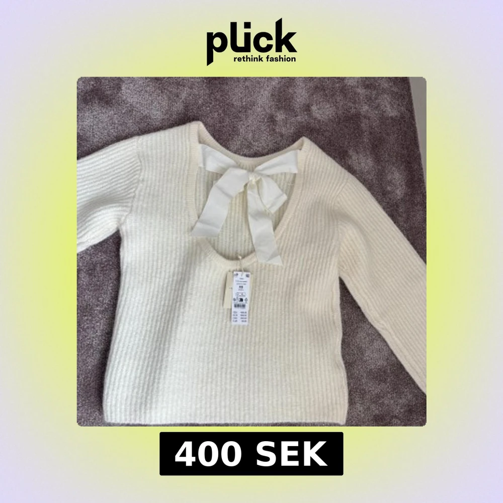 Säljer en söt vit stickad tröja med en stor rosett i nacken. Tröjan har en v-ringad design och långa ärmar. Perfekt för en stilren och mysig look. Passar bra till både jeans och kjol. Aldrig andvänd, prislapp är fortfarande på💞💞
