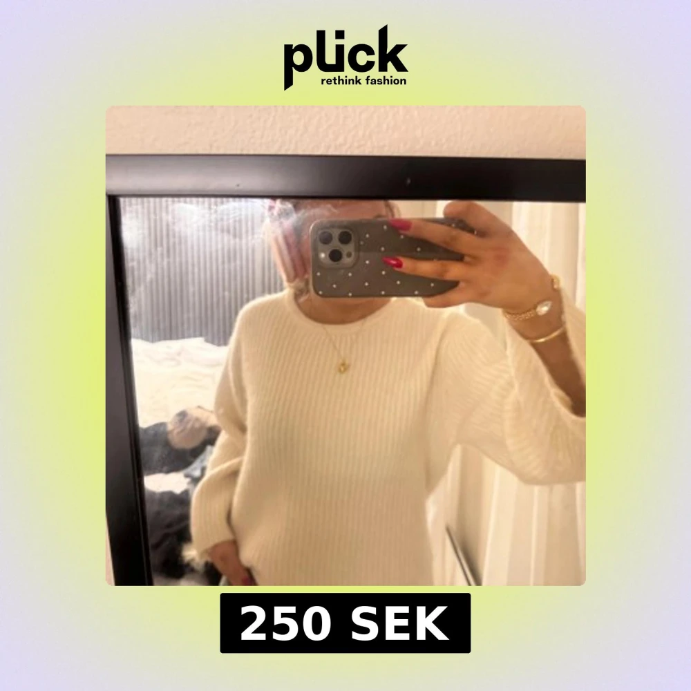 Supermysig vit stickad tröja med ribbad struktur och rund hals. På ryggen finns en söt vit rosett som ger en extra touch. Perfekt för dig som gillar stilrena och gulliga detaljer. Långärmad och loose fit för skön komfort.