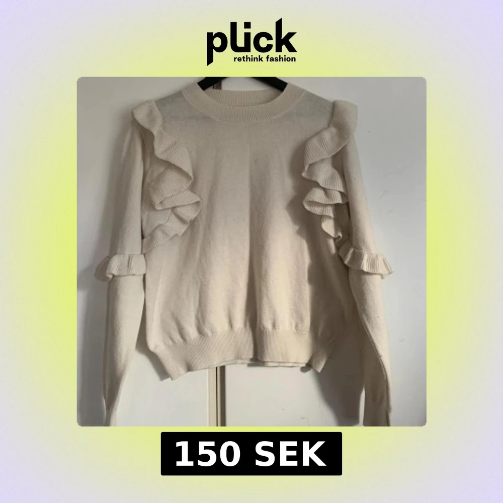 SĂ€ljer en söt vit stickad tröja med volanger lĂ€ngs axlar och Ă€rmarđĂr i stl L men passar mig bra som har stl xs/sđ«¶đ»Den har en liten flĂ€ck men inget som man tĂ€nker pĂ„đ