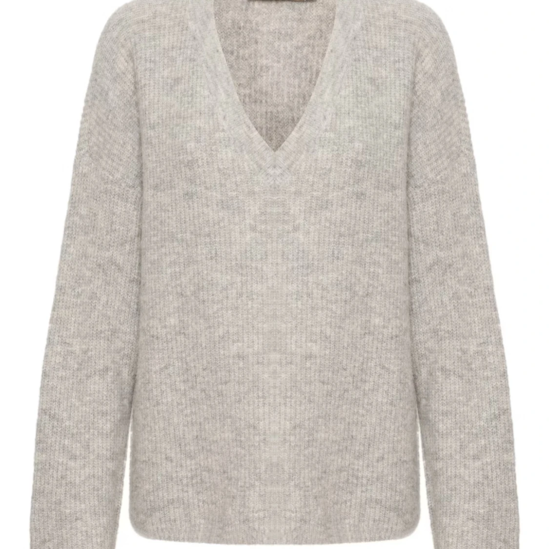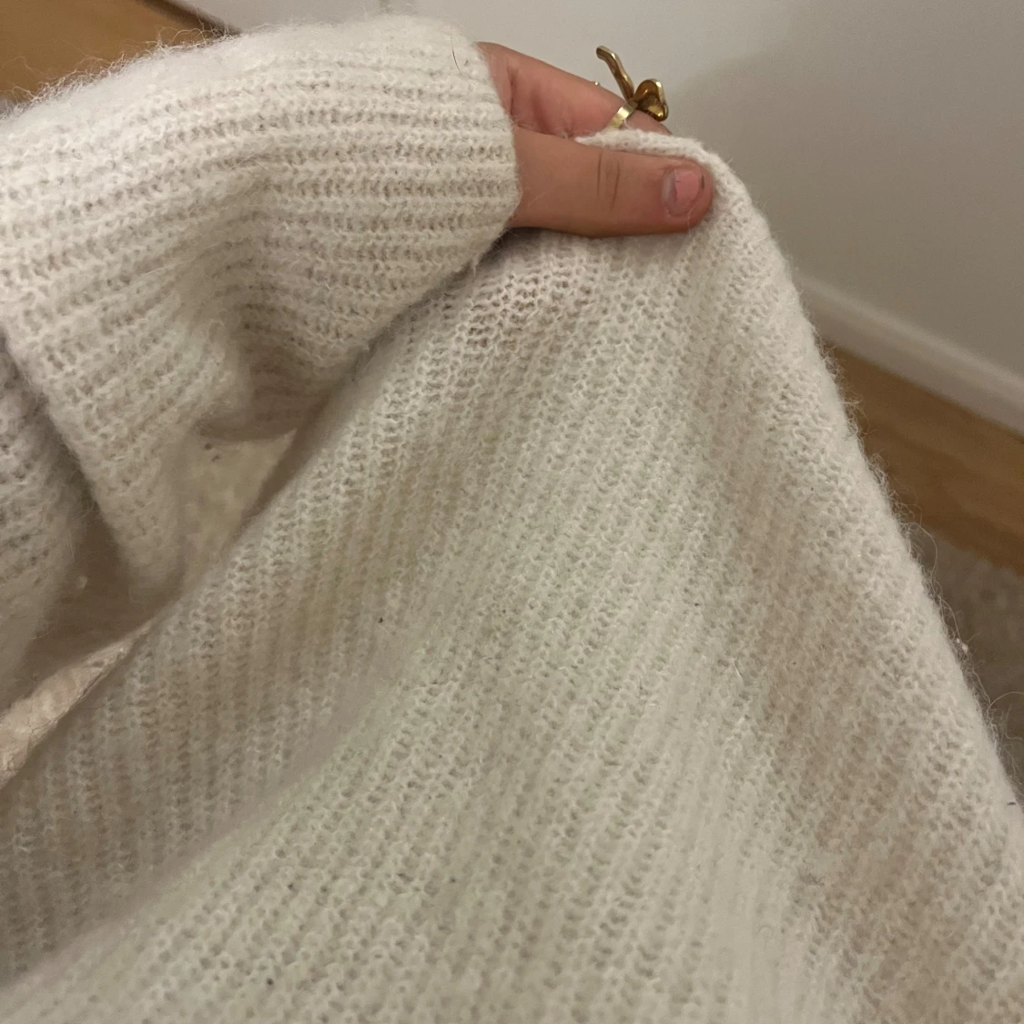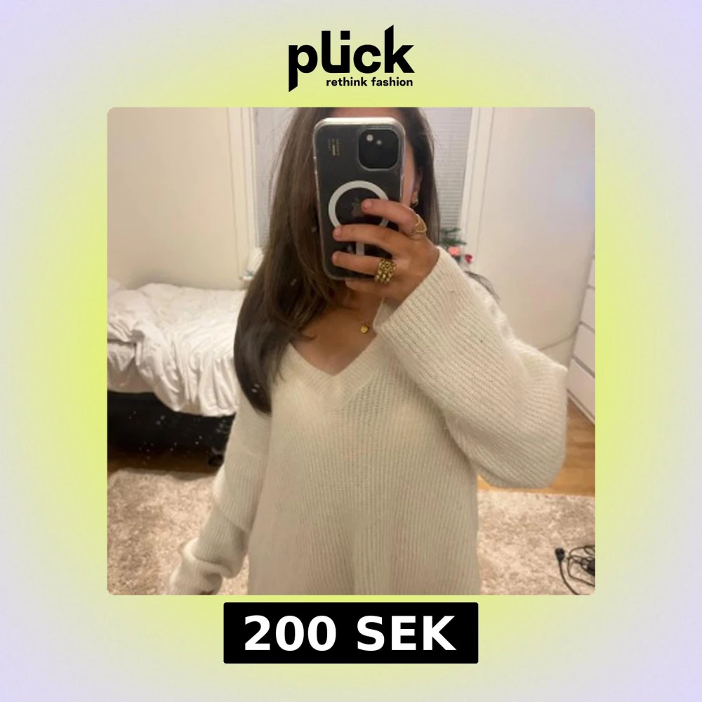(Reporna är på spegeln) Mysig vit stickad tröja med v-ringning och långa ärmar. Tröjan har en loose passform och är ribbstickad för extra struktur. Perfekt för alla outfits och mys dagar. Superenkel att matcha med jeans eller kjol. 🤍