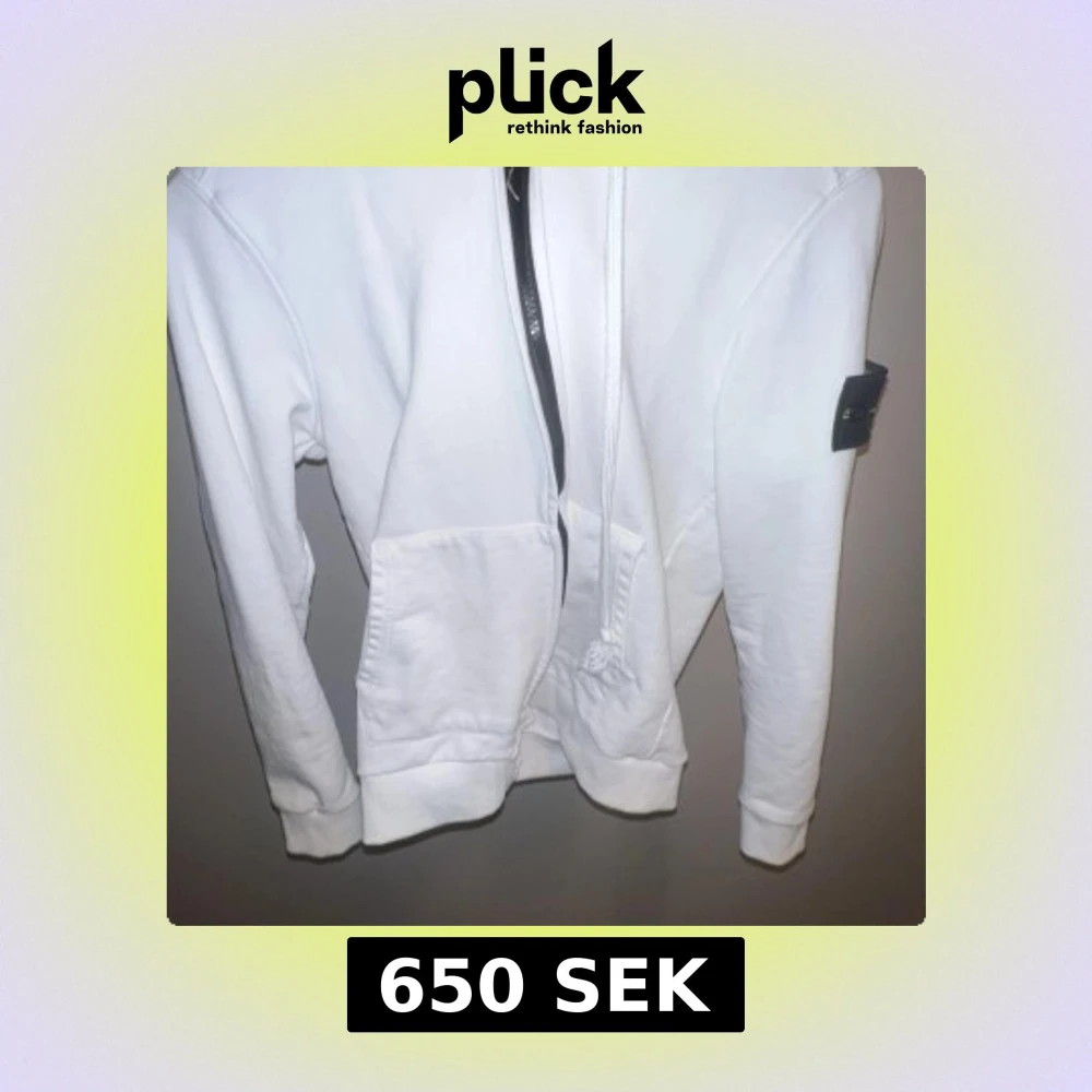 Säljer en stilren vit hoodie med dragkedja och fickor framtill. Den har en klassisk design med huva och långa ärmar. Perfekt för en avslappnad look. Säljer då den är för liten på mig