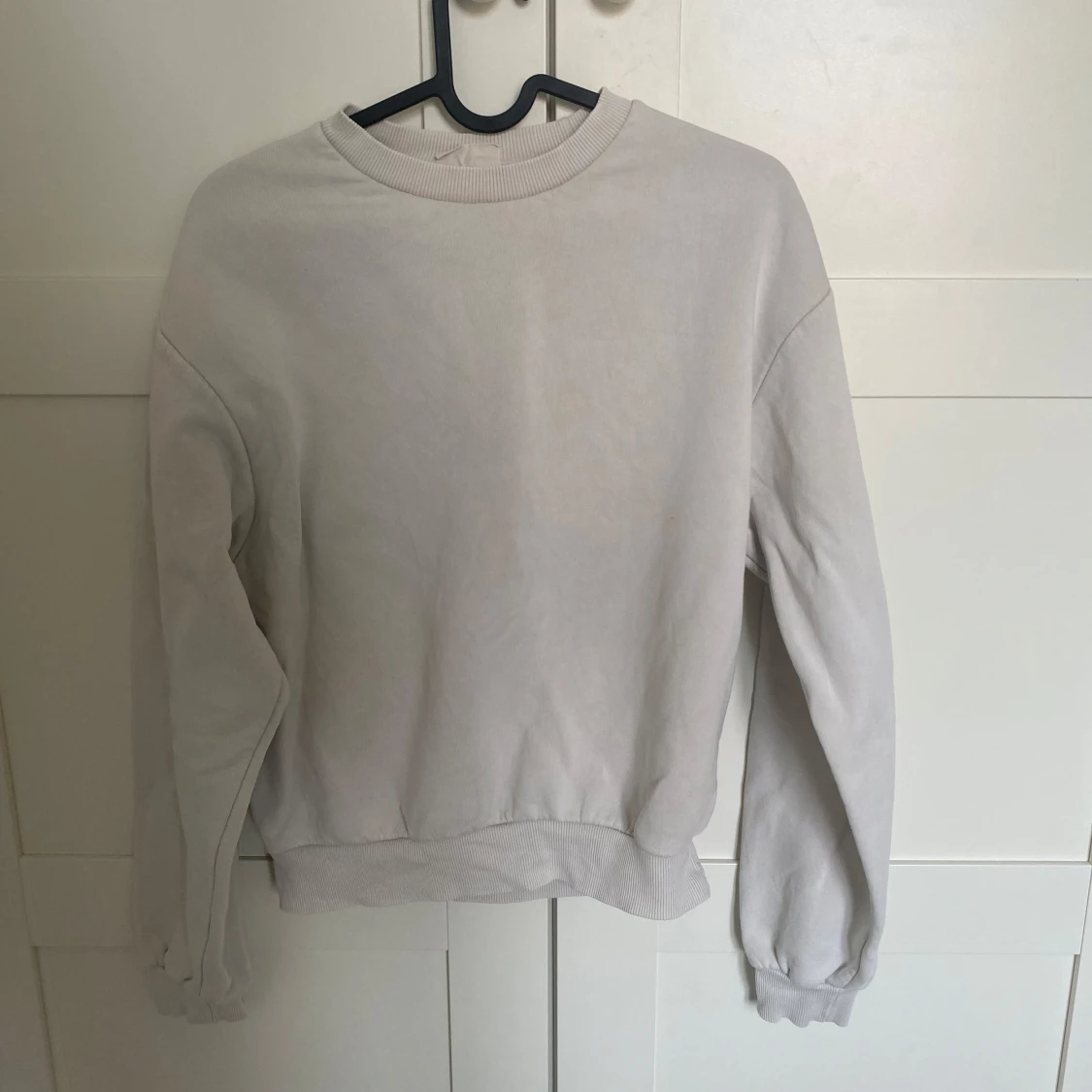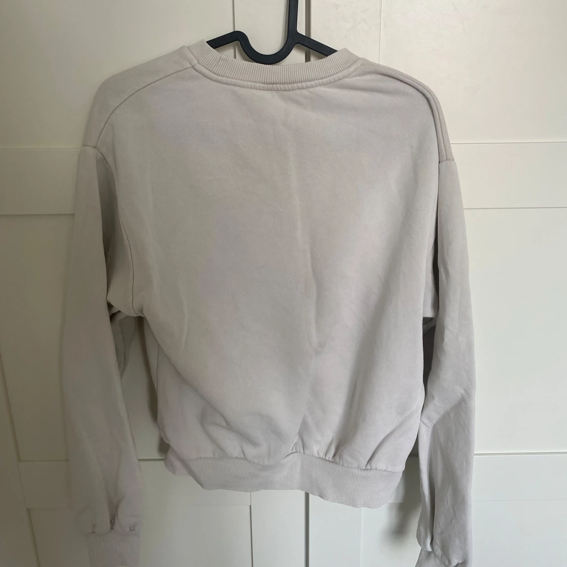 Vit sweatshirt med rund hals och ribbade muddar vid ärmslut och nederkant.