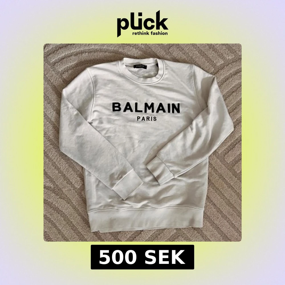 Vit sweatshirt från Balmain Paris med svart logotyptryck på bröstet. Klassisk rund halsringning, långa ärmar och ribbade muddar. Tillverkad i mjuk bomull för en skön och avslappnad look.