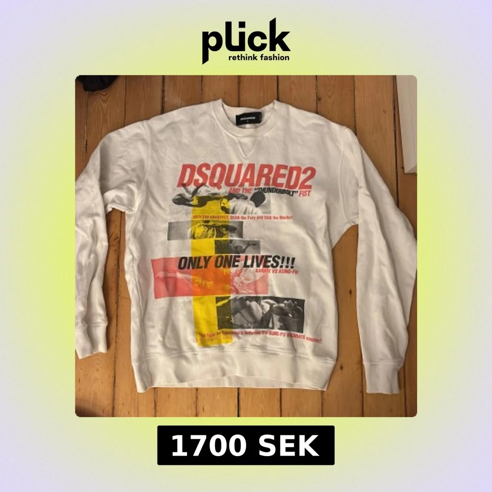 Säljer en cool vit sweatshirt från Dsquared2 med tryck i rött, gult och svart. Tröjan har långa ärmar och en rund halsringning. Perfekt för en avslappnad stil med en touch av attityd. Pris kan förhandlas. Nypris 4100kr