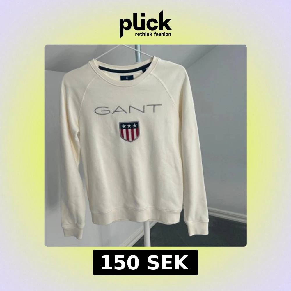 Säljer en stilren vit sweatshirt från Gant med broderad logotyp och emblem på bröstet. Tröjan har långa ärmar och rund halsringning. Perfekt för en avslappnad stil. Använd fåtal gånger🩷
