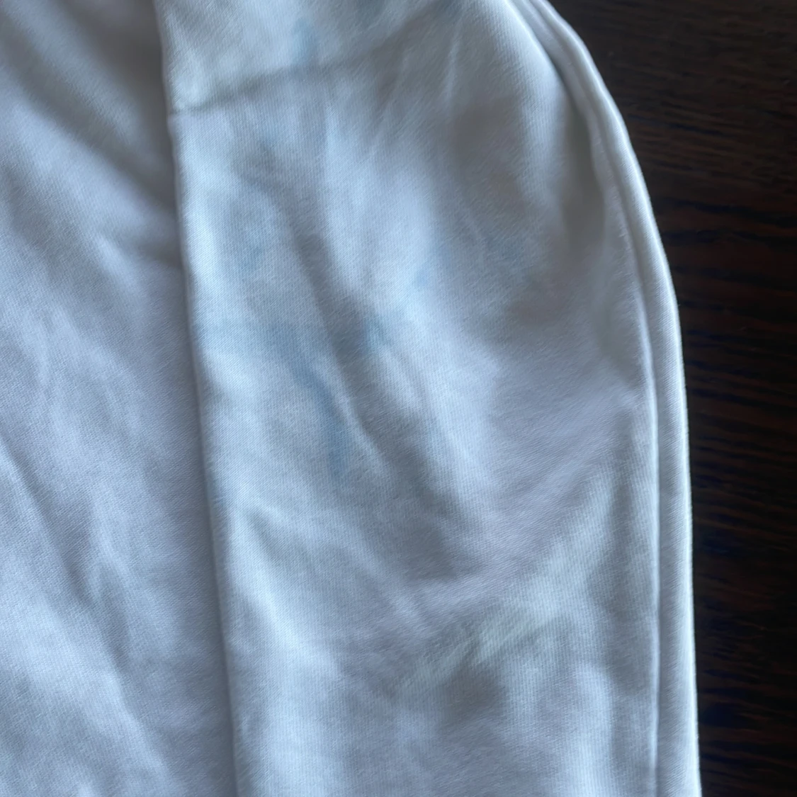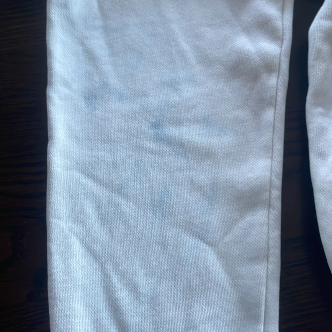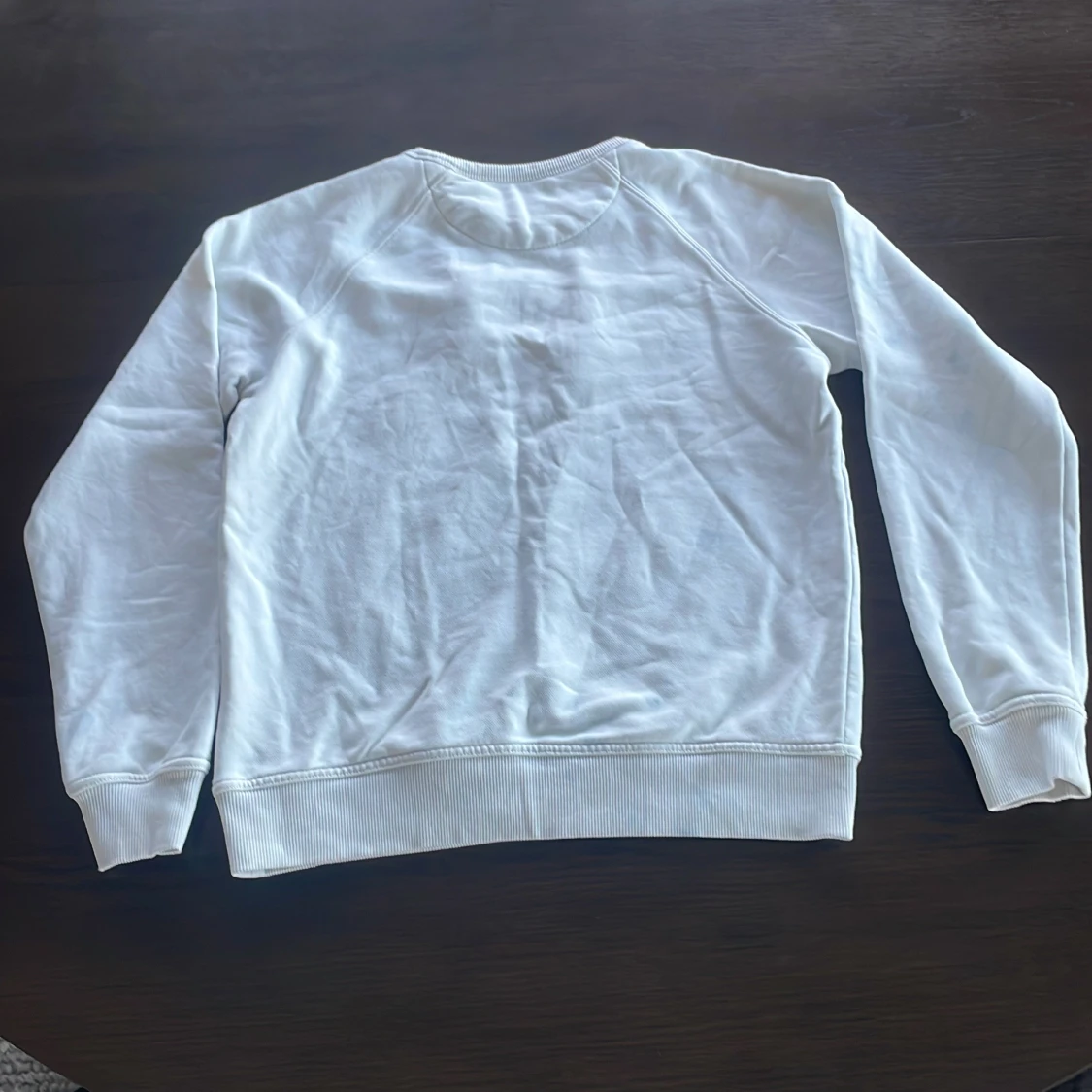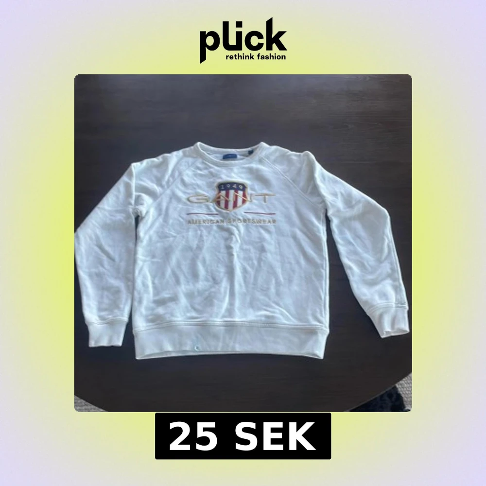 Vit sweatshirt från GANT med broderad logga och texten 'American Sportswear' framtill. Tröjan har långa ärmar, rund halsringning och ribbade muddar vid ärmslut och nederkant. Klassisk och stilren design med broderad detalj. DEN HAR BLÅA FLÄCKAR HÄR OCH DÄR!!!