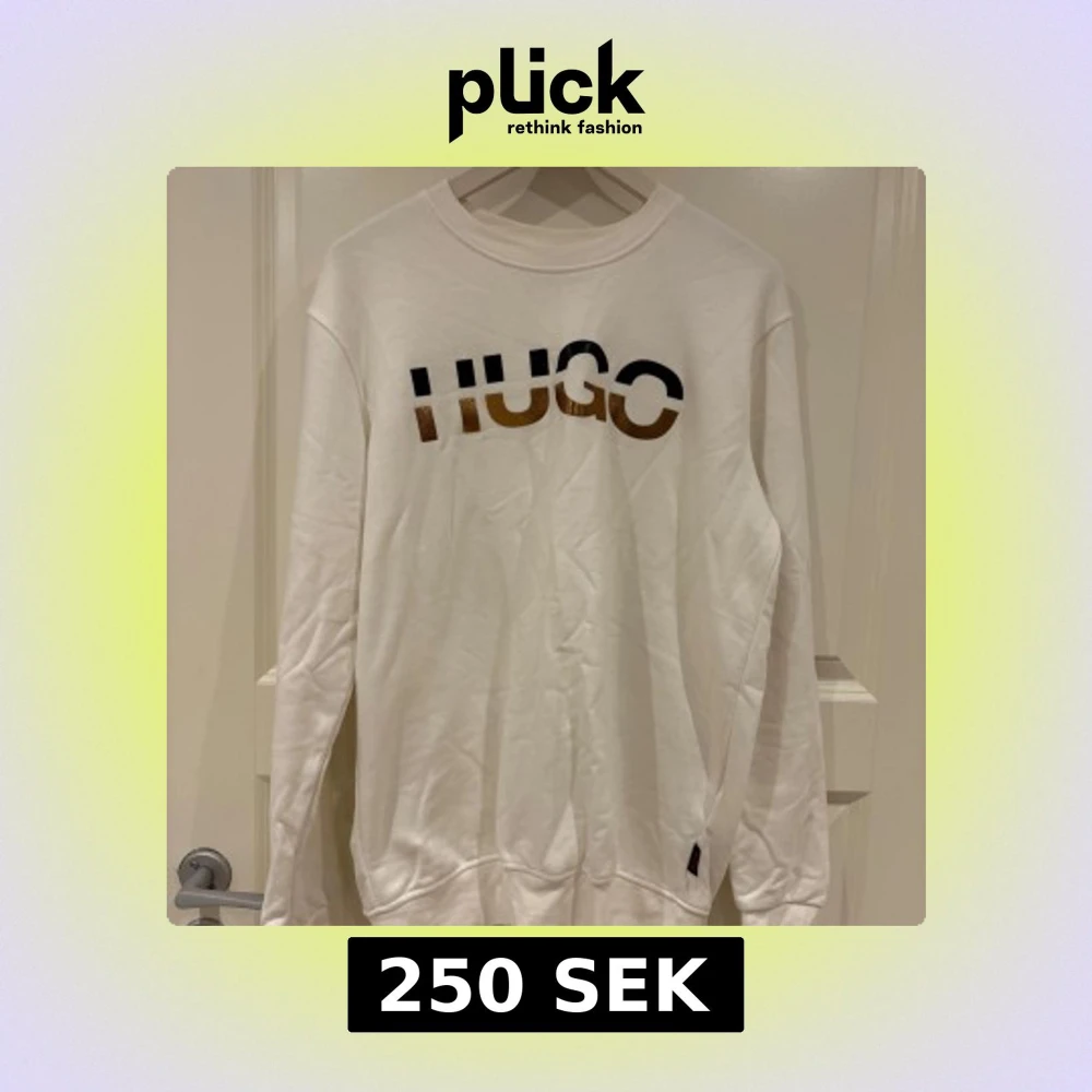 Snygg vit sweatshirt från Hugo Boss med stor logga i svart och guld framtill. Tröjan har rund halsringning och långa ärmar, perfekt för en clean och stilren look. Mjuk bomullskänsla och relaxed fit.