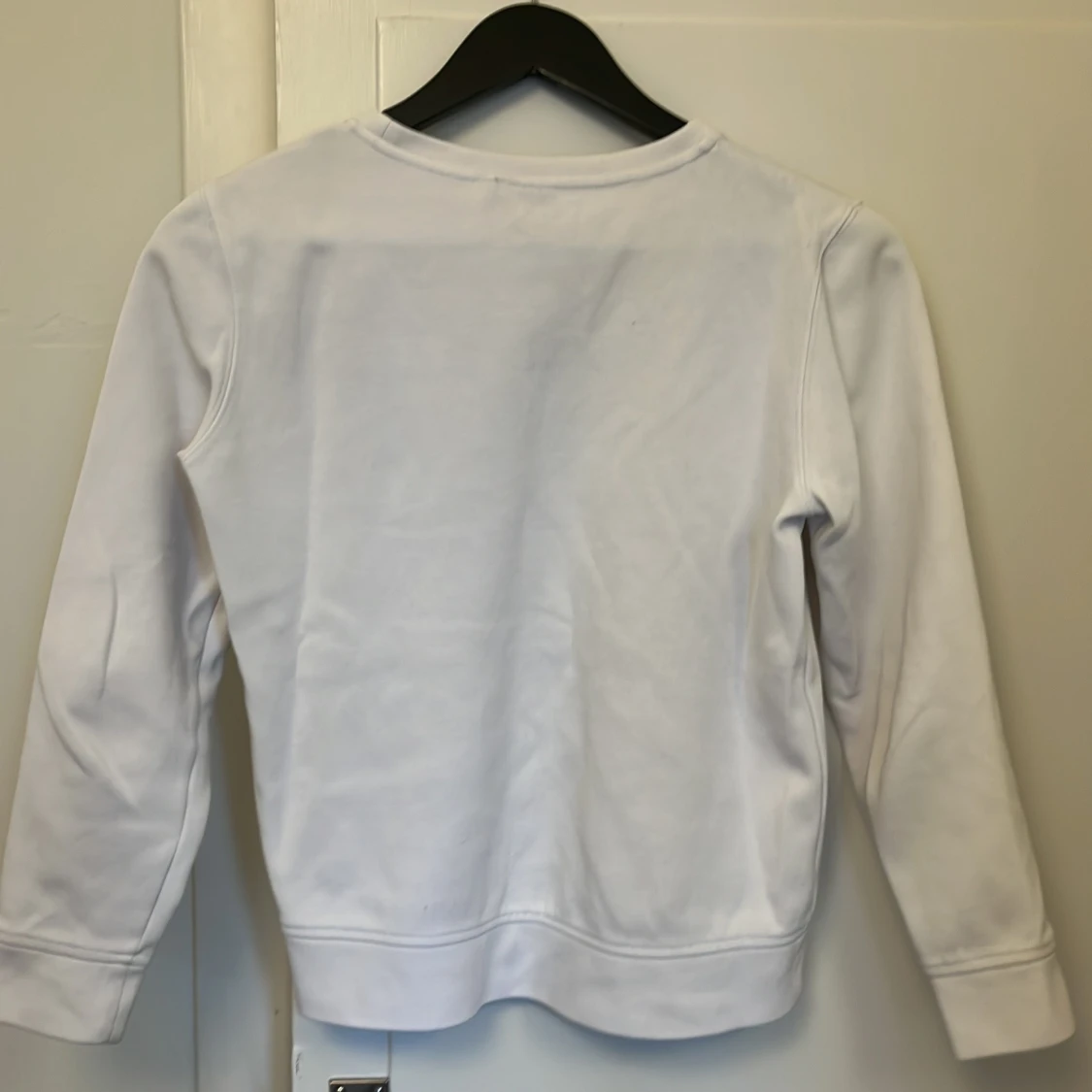Vit sweatshirt från Hugo Boss med rund hals och tryck i svart på bröstet där det står 'BOSS' i cirkel. Tröjan har långa ärmar och en klassisk, avslappnad passform. Perfekt för en clean och stilren look.