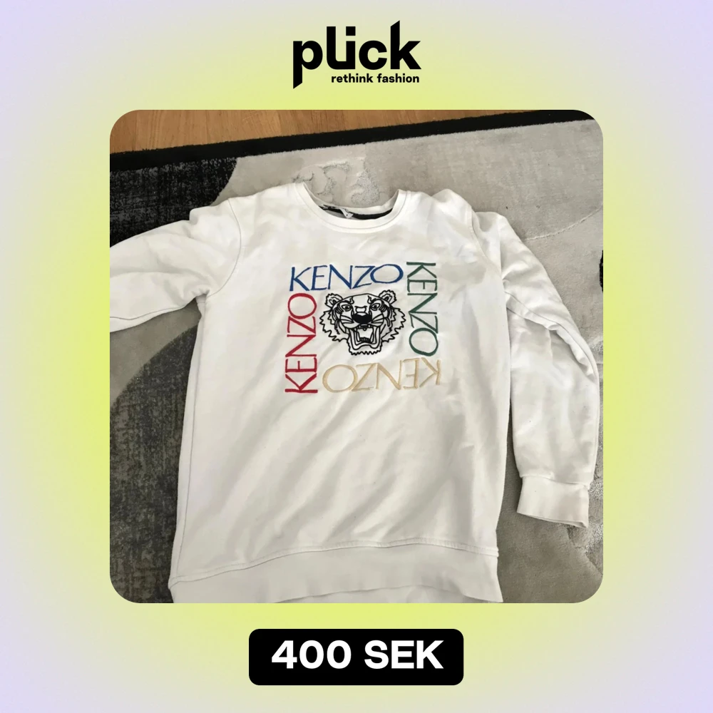 Säljer en snygg vit sweatshirt från Kenzo med färgglatt tryck och ikonisk tiger. Tröjan har långa ärmar och är perfekt för en casual look. Passar både till vardags och festliga tillfällen. Superbekväm och stilren!