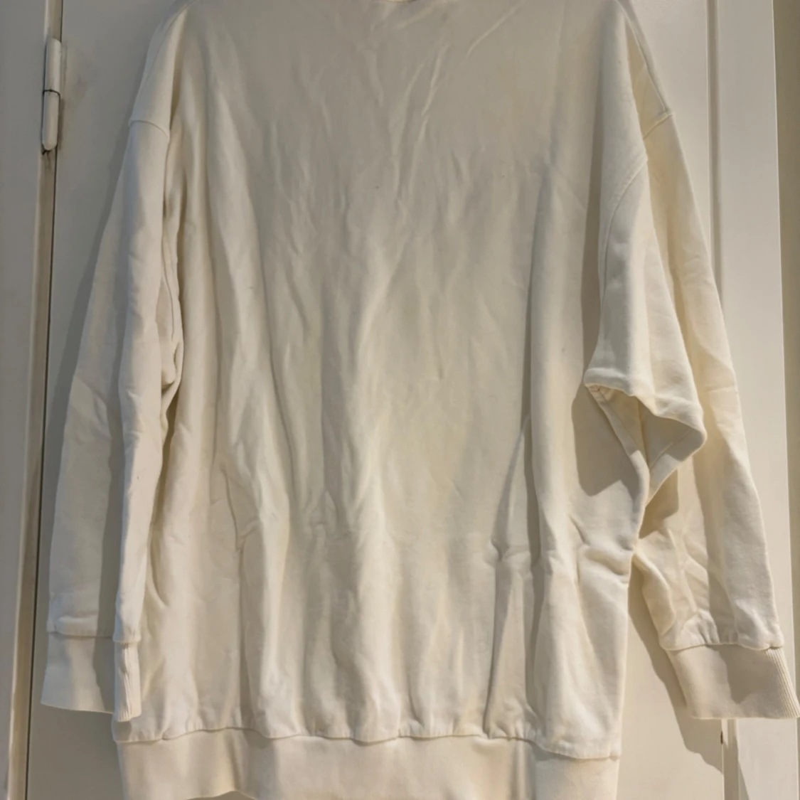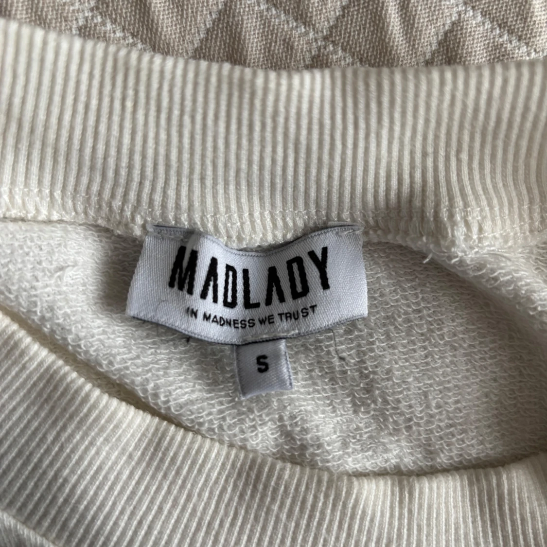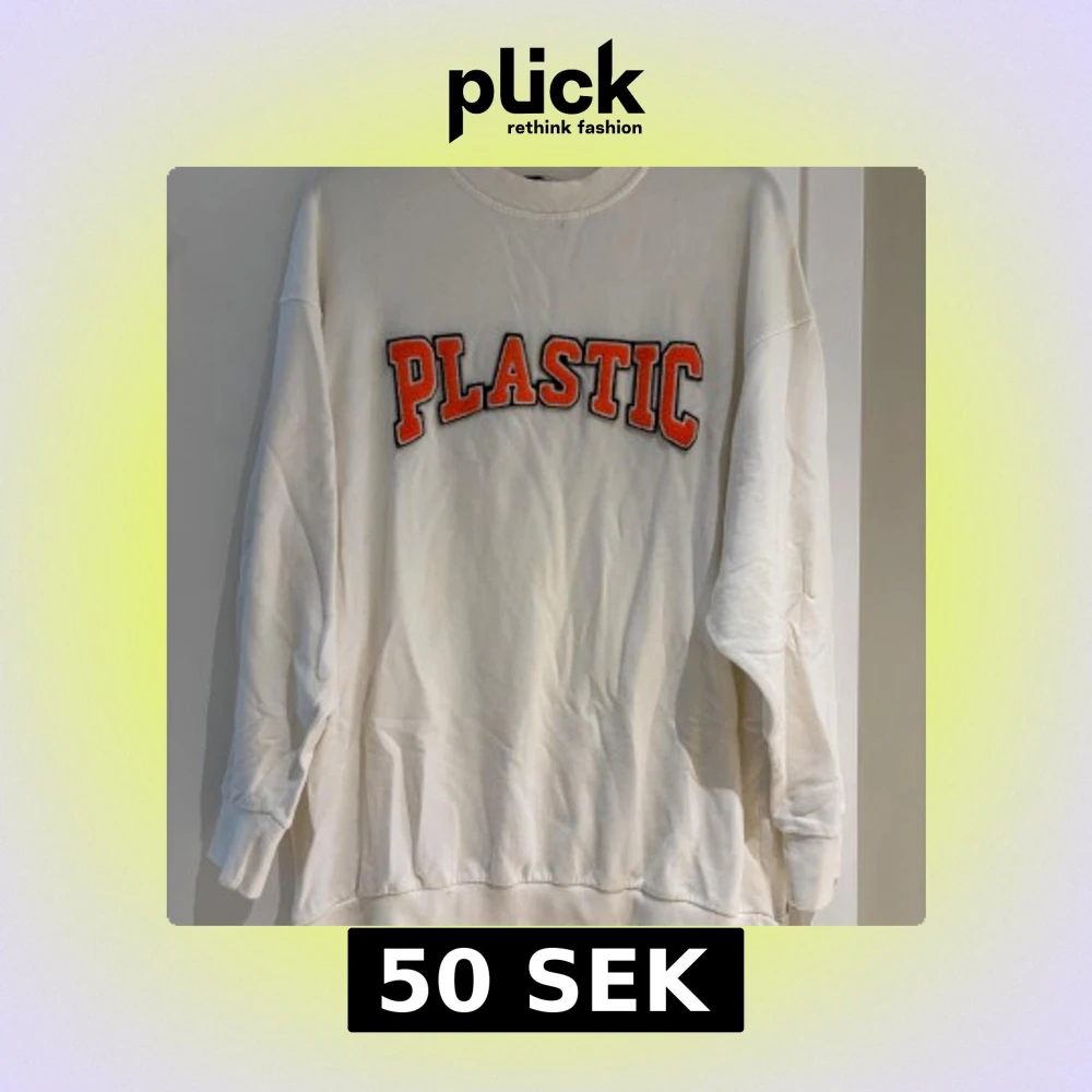 Vit oversized sweatshirt från Madlady med stort broderat PLASTIC-tryck i orange och svart på bröstet. Tröjan har rund hals, långa ärmar och ribbade muddar. Perfekt för en chill och trendig look.