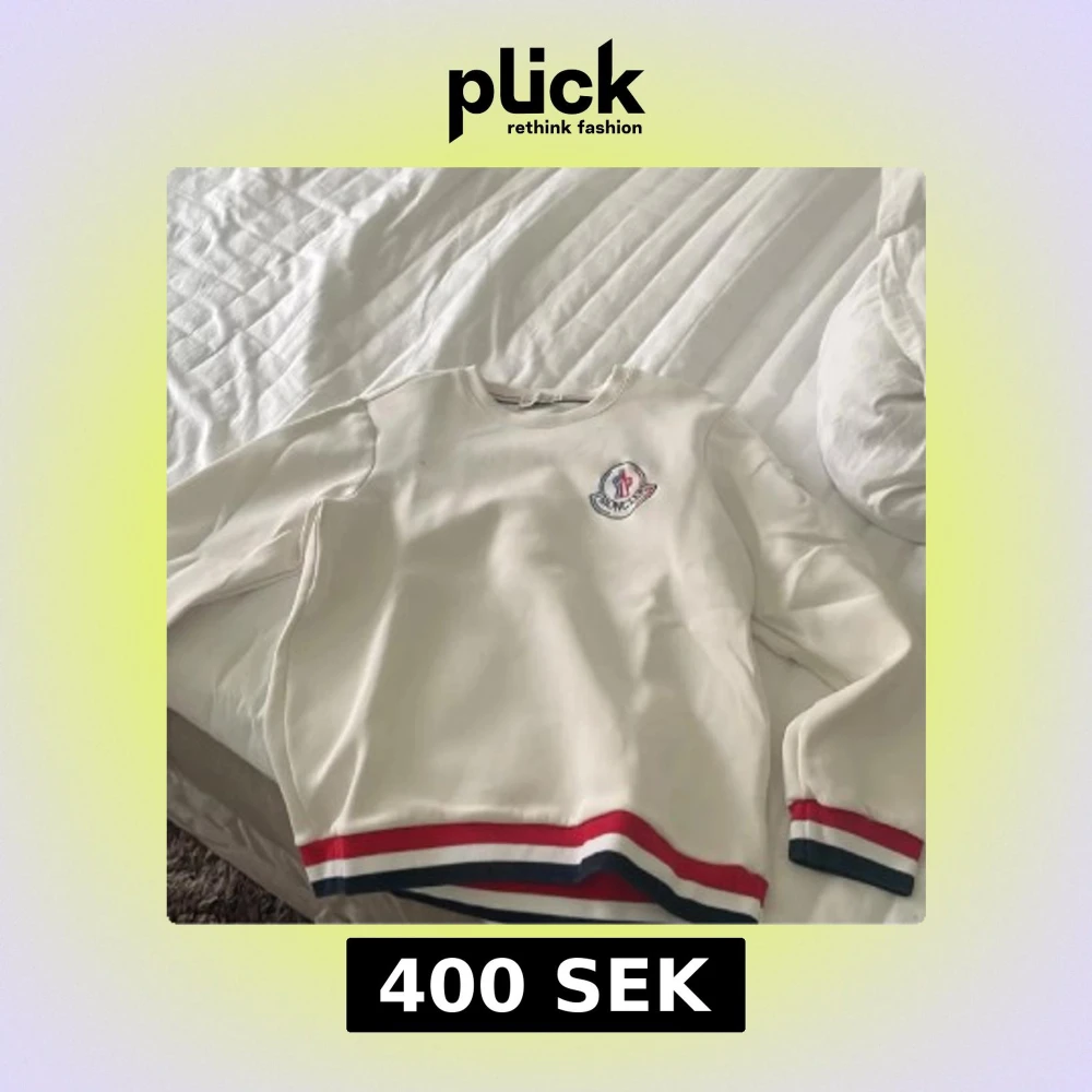Vit sweatshirt från Moncler med broderad logga på bröstet. Tröjan har långa ärmar och ribbade muddar med röda, blå och vita ränder. Rund hals och mjukt material som känns skönt mot huden. Perfekt för dig som gillar stilrena och sportiga vibes.