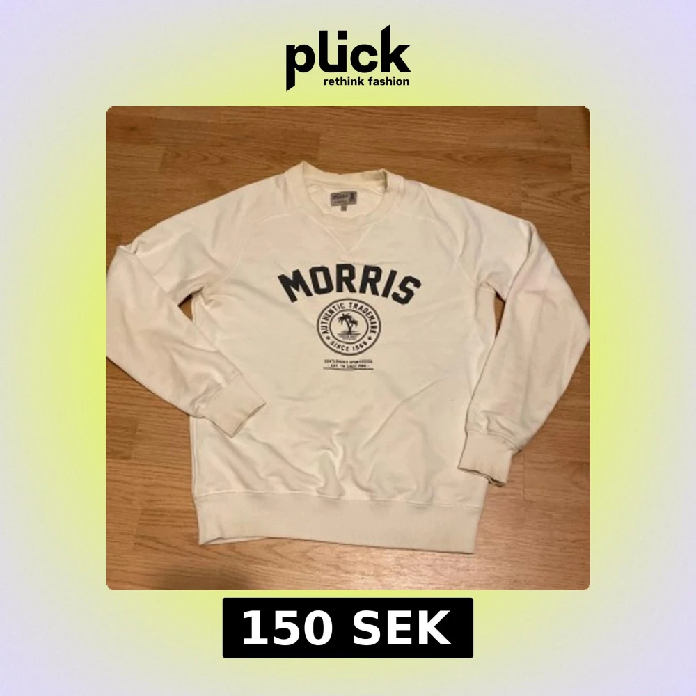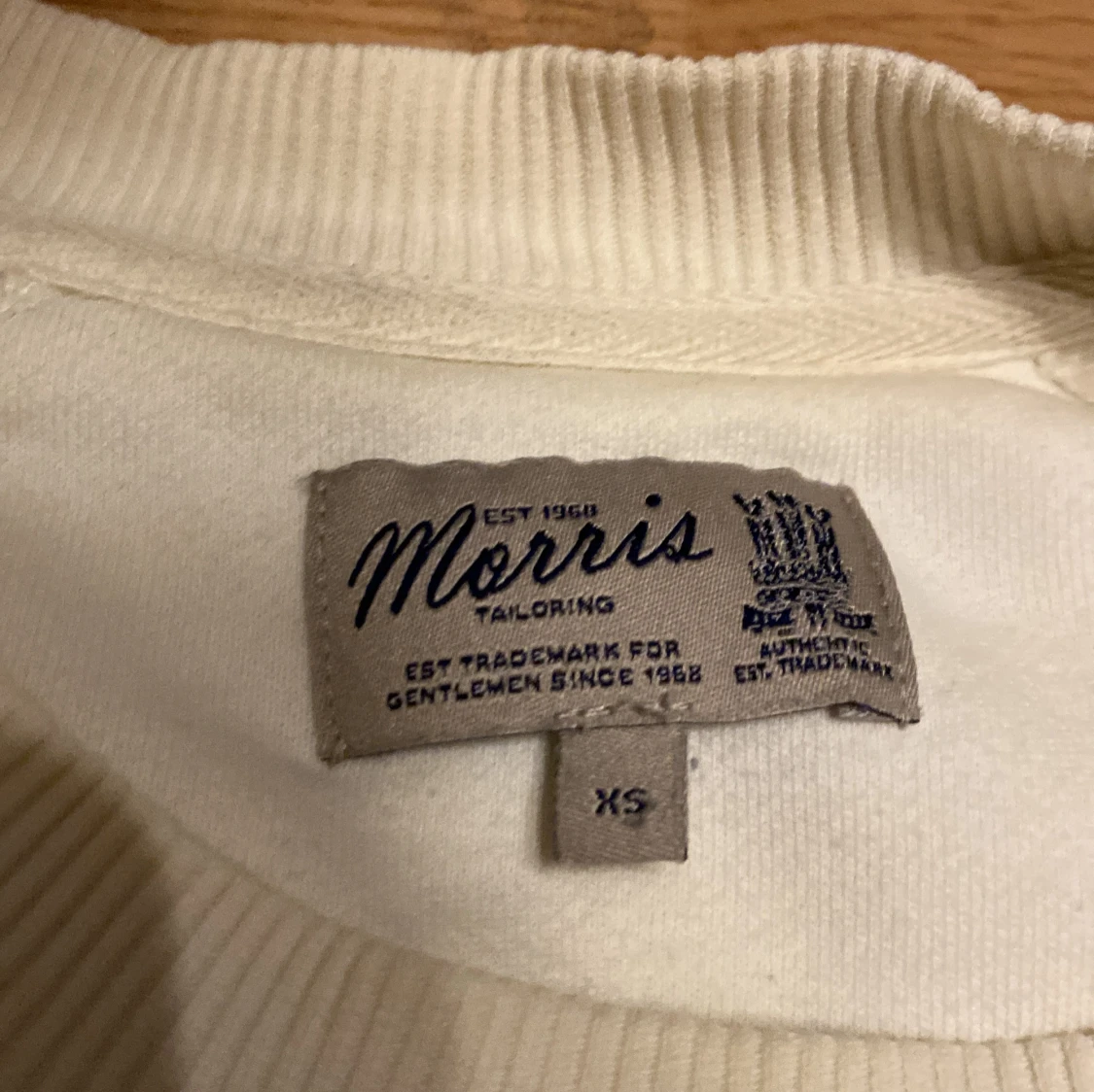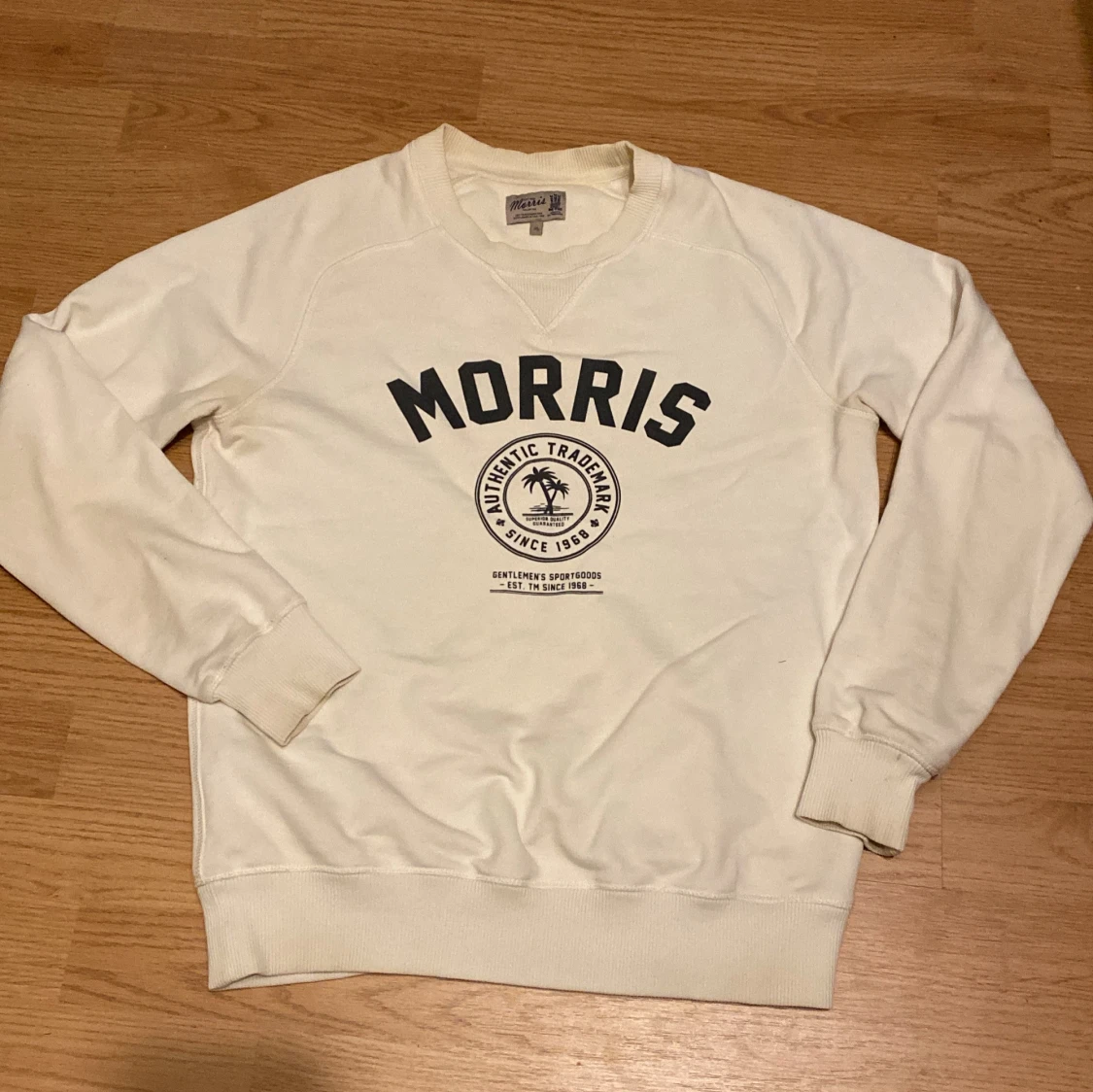 Vit sweatshirt från Morris med svart tryck framtill och rund hals. Klassisk modell med ribbade muddar vid ärmslut och nederkant. Perfekt för en avslappnad stil.