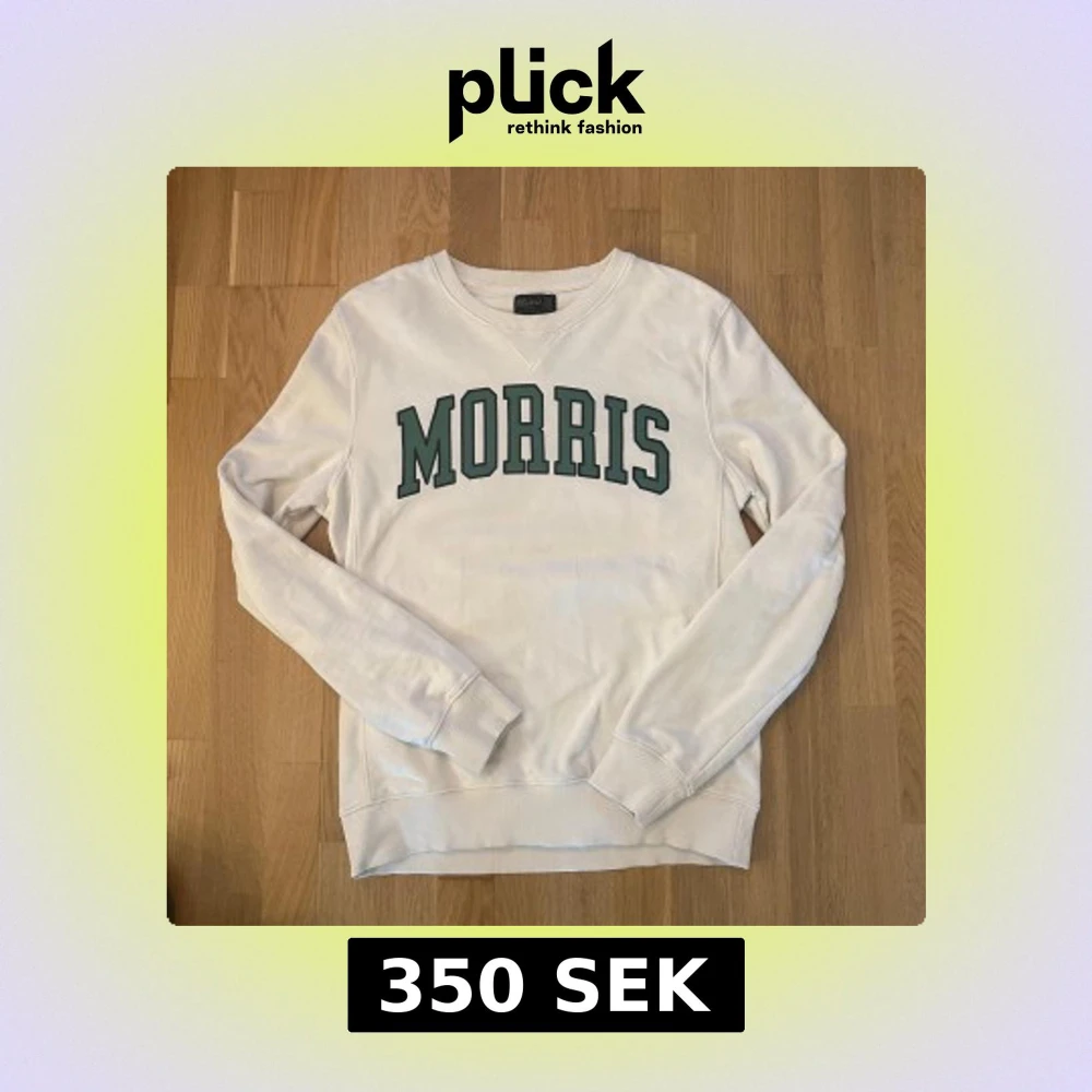 Vit sweatshirt från Morris med grönt tryck över bröstet. Klassisk rund halsringning, ribbade muddar och lång ärm. Skön och stilren tröja i bomull som passar perfekt till jeans eller shorts. Snyggt collegeinspirerat plagg för en avslappnad look.