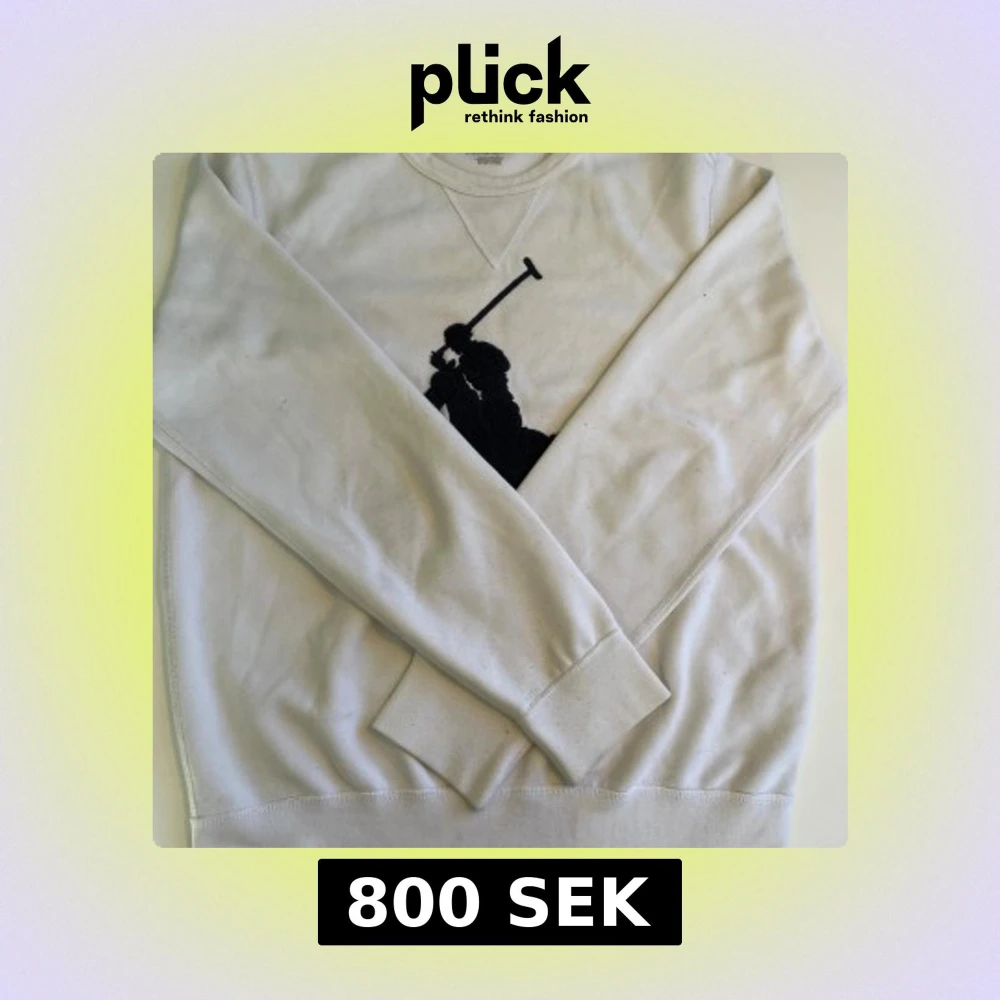 Vit sweatshirt från Polo Ralph Lauren med stor svart broderad polospelare på bröstet. Klassisk rund halsringning och långa ärmar. Tillverkad i mjuk bomull för en skön och avslappnad stil.