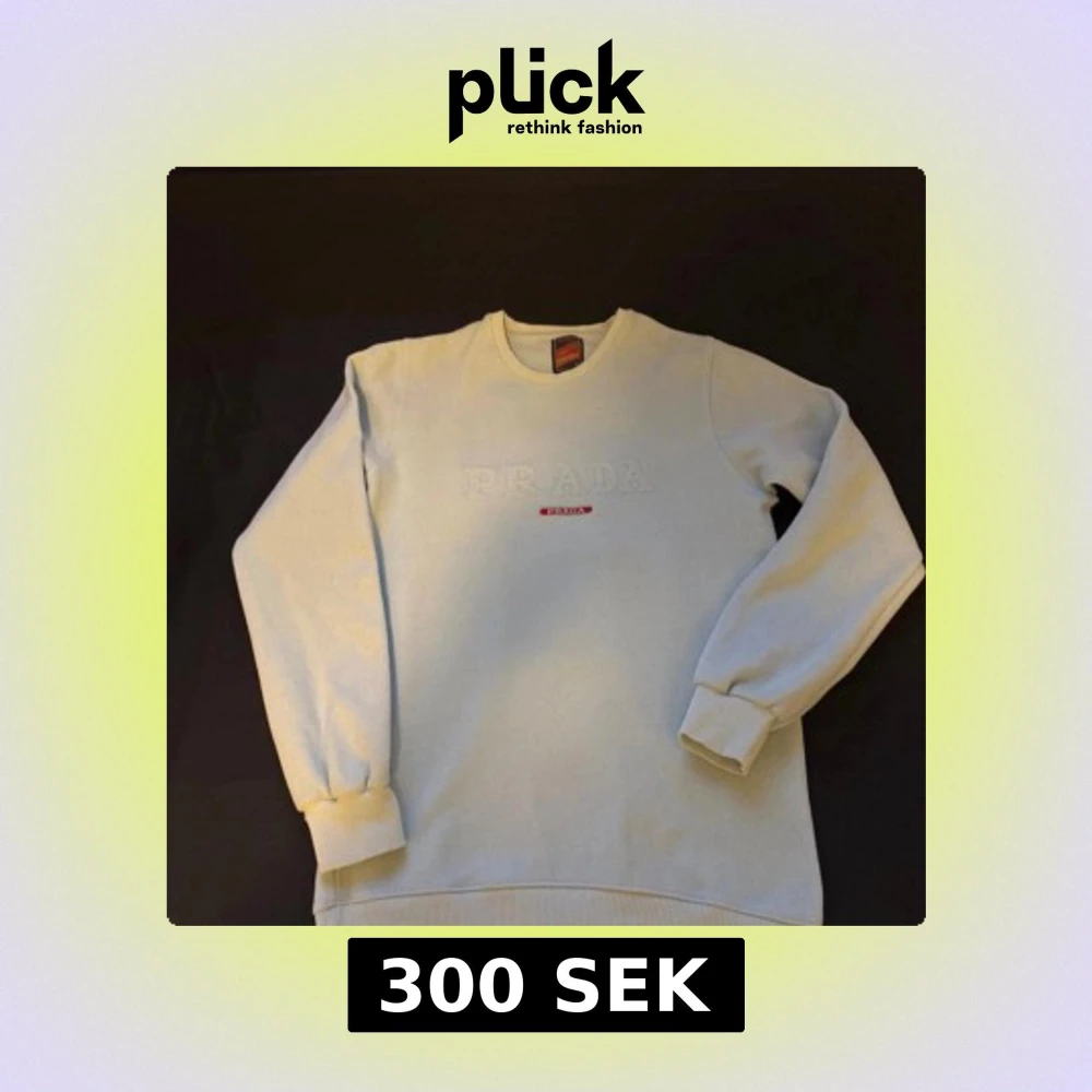 Säljer en clean vit sweatshirt från Prada med broderad logga framtill och diskret röd detalj. Tröjan har rund hals, långa ärmar och breda muddar vid ärmslut och nederkant. Perfekt för dig som gillar stilrena designer och exklusiva märken.