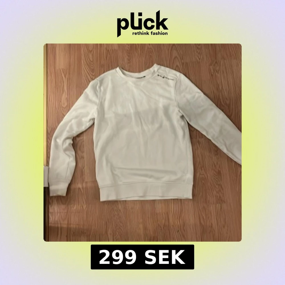 Säljer en stilren vit sweatshirt från Sail Racing i storlek S. Tröjan har rund halsringning och långa ärmar, perfekt för en clean och enkel look. Mjuk och skön bomullskänsla, passar till det mesta i garderoben.