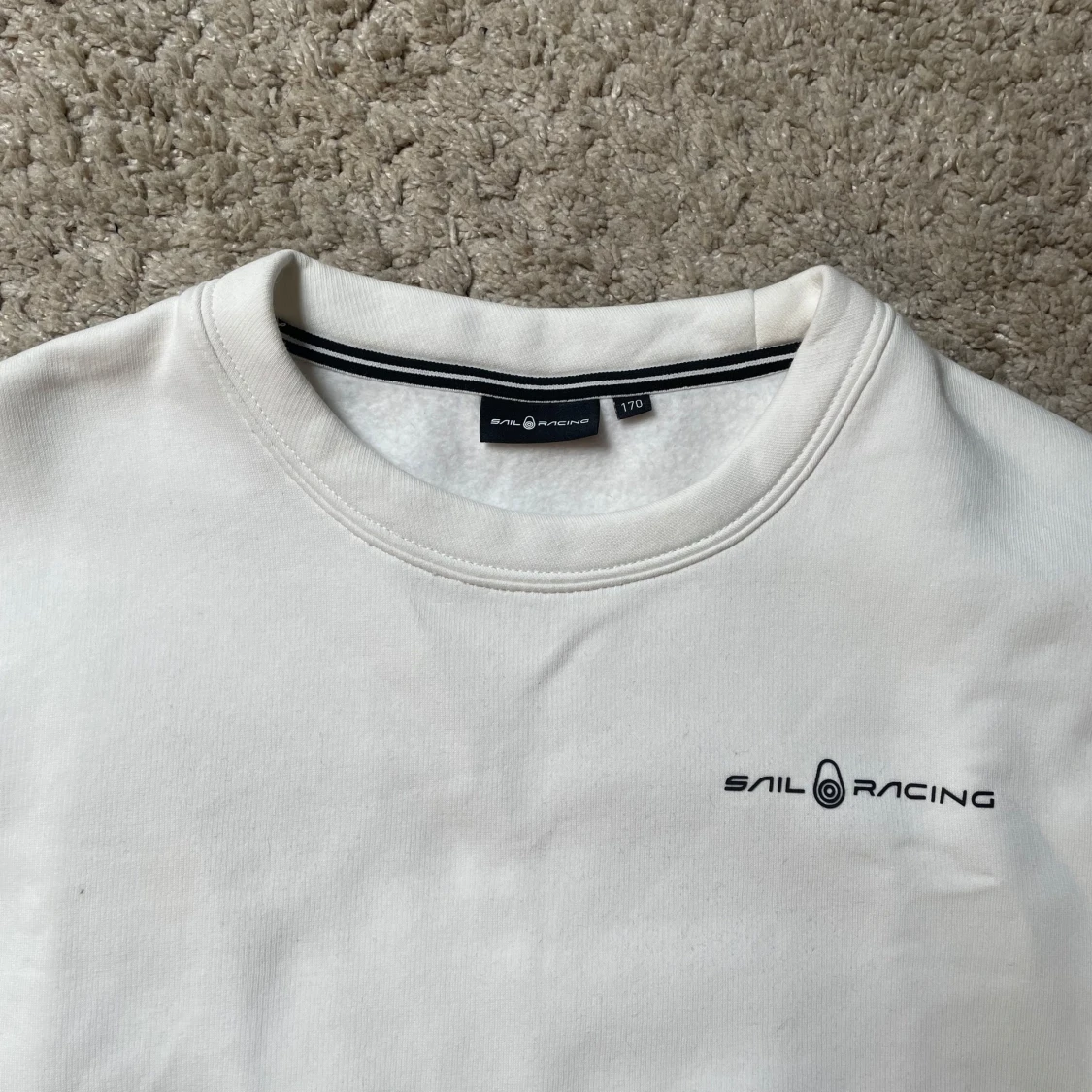 Säljer en stilren vit sweatshirt från Sail Racing med diskret logga på bröstet och nacken. Tröjan har rund halsringning och långa ärmar. Perfekt för en clean och sportig look.